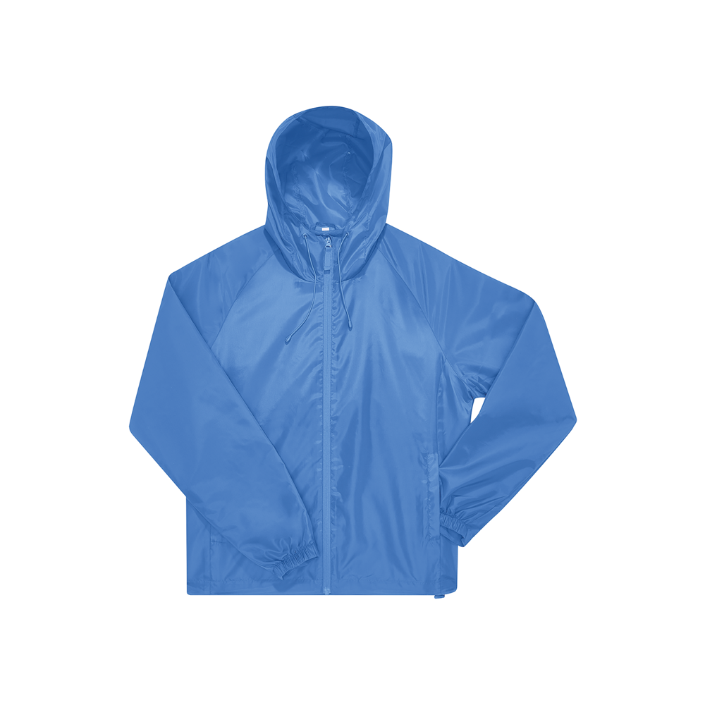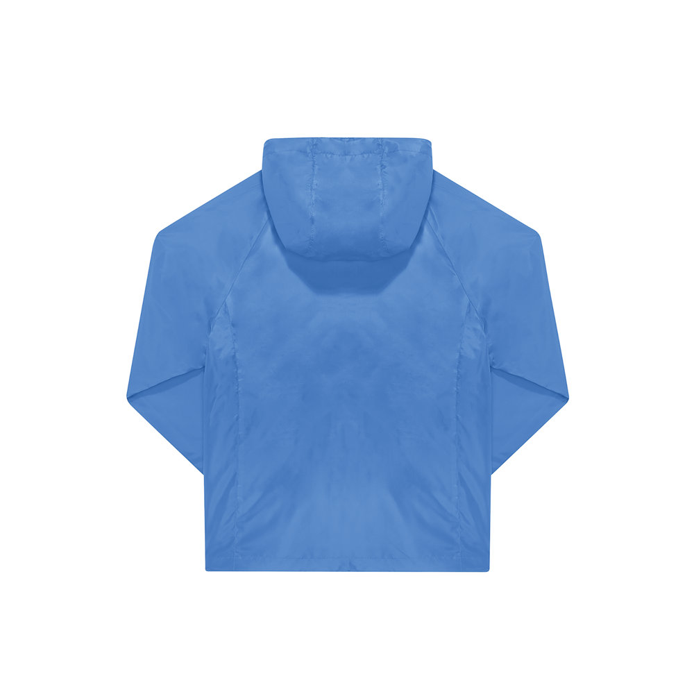 100% poliestere riciclato. Resistente all'acqua grazie al rivestimento DWR idrorepellente (Durable Water Repellent). Maniche raglan, cappuccio antitempesta regolabile e polsini semi-elasticizzati. 2 tasche anteriori con zip.