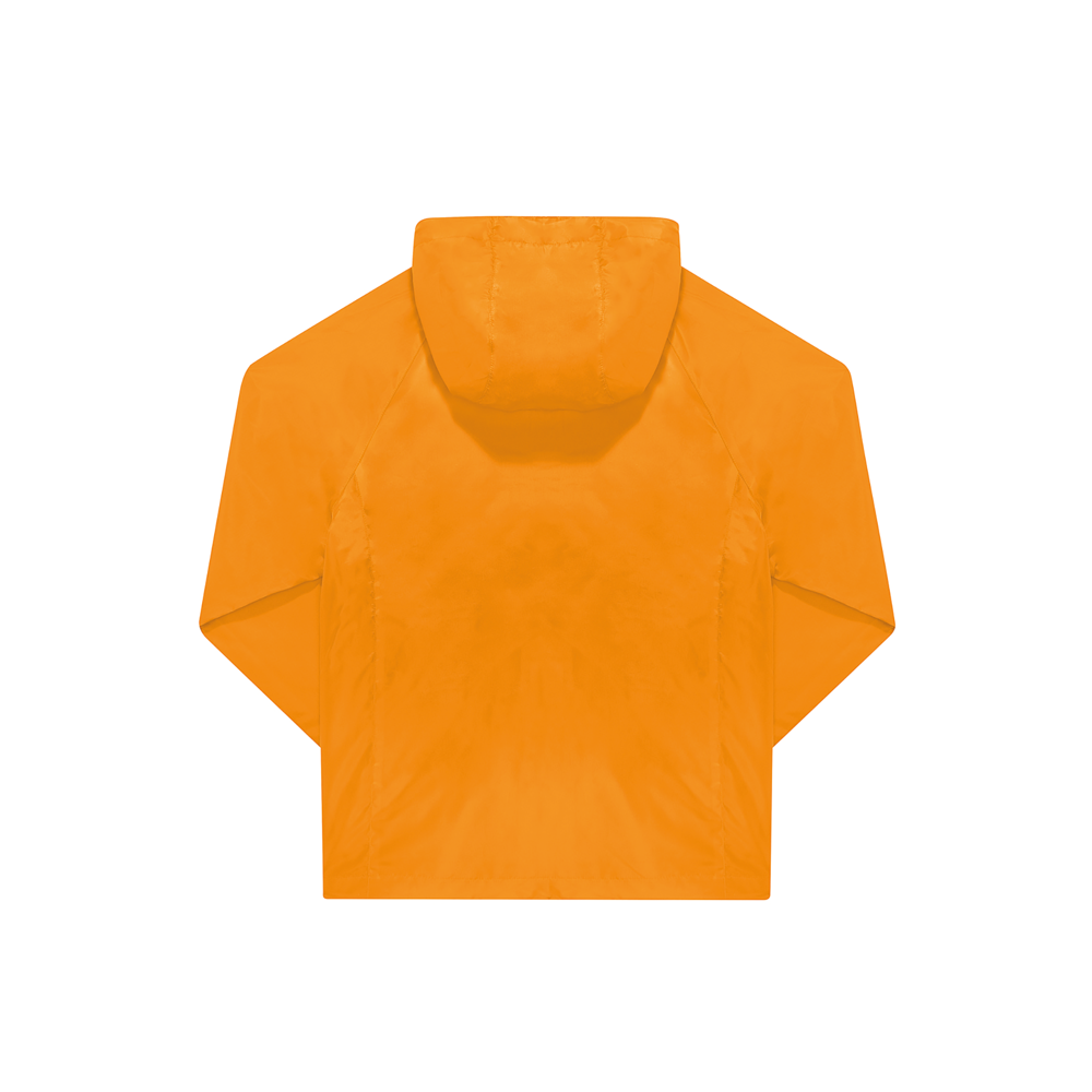 100% poliestere riciclato. Resistente all'acqua grazie al rivestimento DWR idrorepellente (Durable Water Repellent). Maniche raglan, cappuccio antitempesta regolabile e polsini semi-elasticizzati. 2 tasche anteriori con zip.