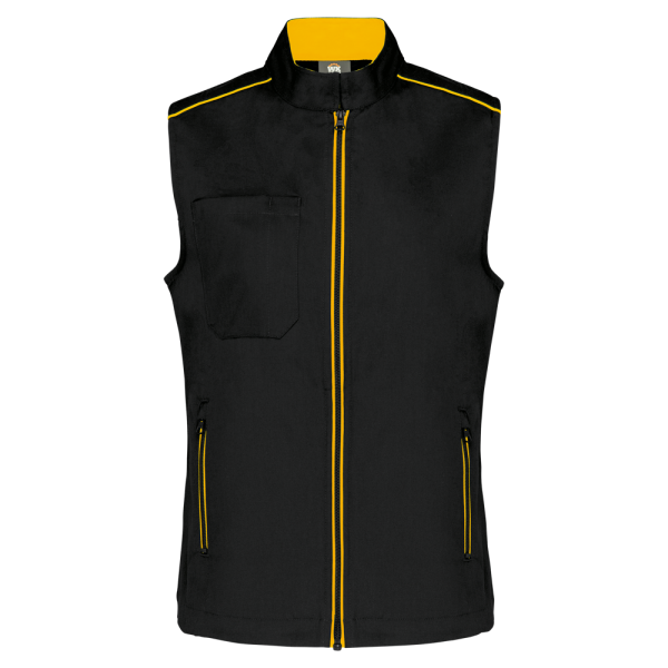 65% poliestere / 35% cotone. Lavabile a 60 °C. 2 tasche laterali con zip. 1 tasca sul petto aperta sul lato destro con porta penna. 1 etichetta per il nome all'interno. Zip sul davanti e tasche a contrasto. Dettaglio a contrasto sulle spalle. Interno collo a contrasto con asola per appendere il capo. 2 spacchetti comfort sul retro. Ideale per un uso quotidiano.