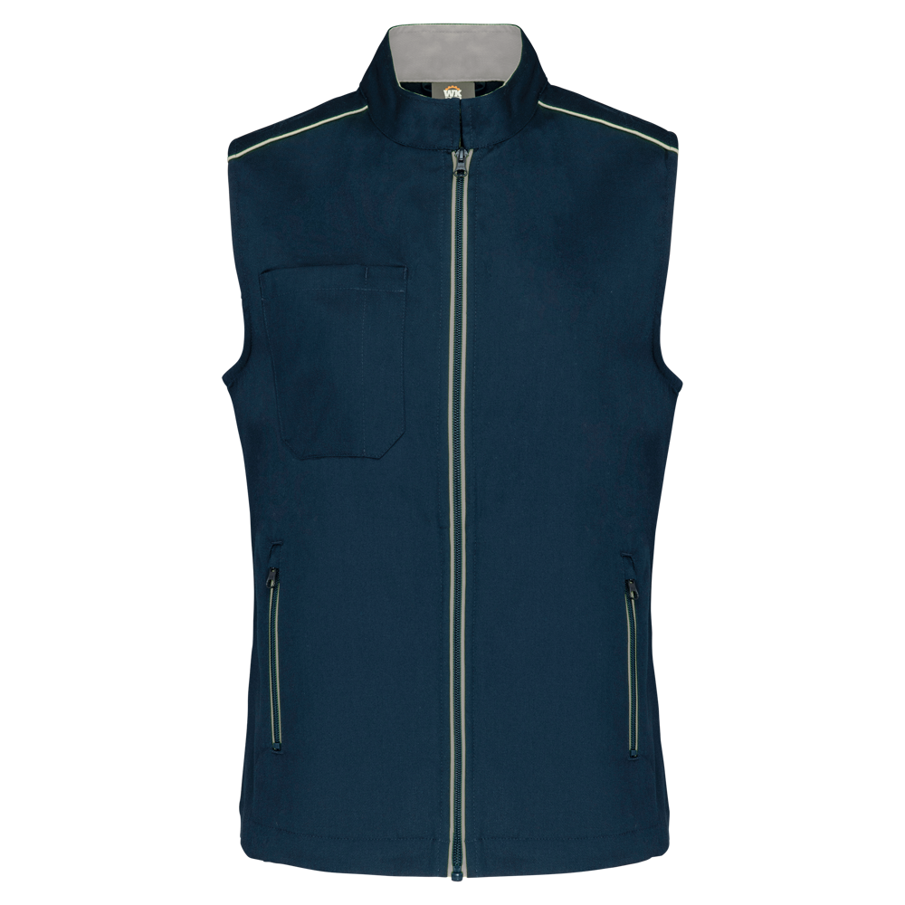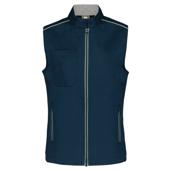 65% poliestere / 35% cotone. Lavabile a 60 °C. 2 tasche laterali con zip. 1 tasca sul petto aperta sul lato destro con porta penna. 1 etichetta per il nome all'interno. Zip sul davanti e tasche a contrasto. Dettaglio a contrasto sulle spalle. Interno collo a contrasto con asola per appendere il capo. 2 spacchetti comfort sul retro. Ideale per un uso quotidiano.