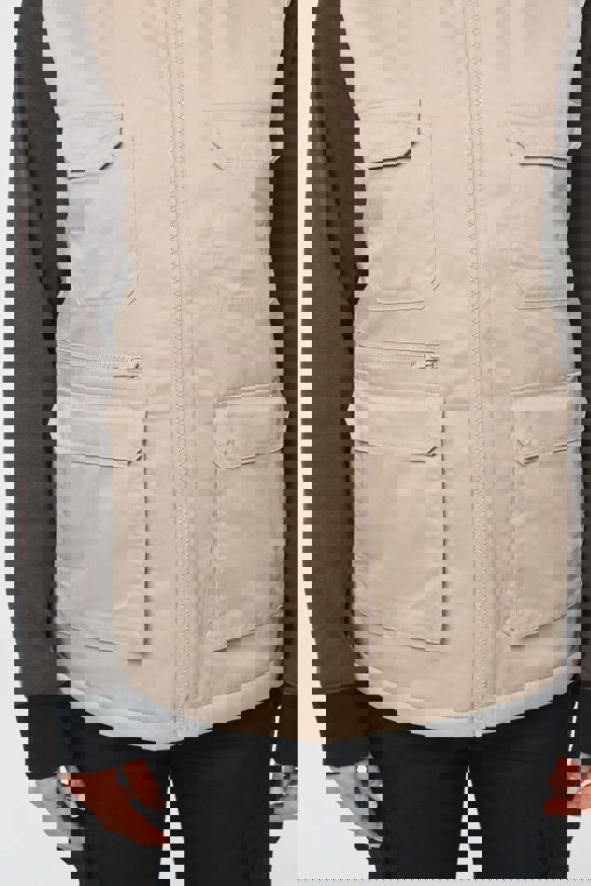 Esterno: 65% poliestere / 35% cotone. Imbottitura interna 100% poliestere. Fodera interna 100% poliestere. Taglio dritto. 2 ampie tasche applicate con patta a strappo e apertura laterale + 2 tasche applicate sul petto con patta a strappo, tra cui una con 1 scomparto aperto porta penna. 1 tasca con zip in plastica tono su tono sul lato anteriore destro. 1 tasca interna a strappo lato cuore. Chiusura con zip in plastica tono su tono. Asola all'interno del collo per appendere il capo. Parte posteriore più lunga. Zip invisibile a fondo capo per la personalizzazione. Etichetta con il nome del marchio staccabile.