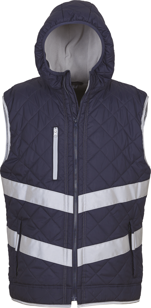 100% poliestere esterno idro-repellente con fodera in pile e imbottitura 100% poliestere. 2 fasce riflettenti (larghezza 5 cm) a forma di V sul corpo, per una maggiore visibilità. Collo alto con proteggi mento integrato. Tasca con zip sul petto. 2 tasche laterali scaldamani con zip. 1 tasca applicata nella fodera fissa in pile. Bordino riflettente a fondo capo. Zip per personalizzazione invisibile a fondo capo (lato interno). Conforme alla norma EN ISO 20471:2013 Classe 2 (solo i colori Hi-Vis Yellow e Hi-Vis Orange) e alla norma britannica GO/RT 3279 Issue 8:2013 relativa agli "Indumenti ad alta visibilità" nel settore ferroviario (solo Hi-Vis Orange).