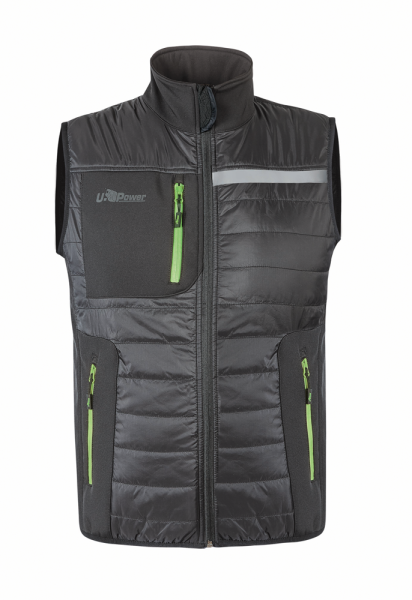 Giacca smanicata da lavoro con imbottitura in grafene dalle proprietà termo-regolatrici in grado di espellere il calore in eccesso e mantenere il corpo in un micro-clima ideale in caso di basse temperature. Giacca smanicata impermeabile con proprietà batterio-statiche che garantiscono il controllo dei cattivi odori e una migliore igiene del capo. Giacca smanicata multi-tasche con due tasche con zip sul davanti, una tasca verticale con zip sul petto e una tasca posteriore con chiusura in velcro. Fondo capo e giromanica in tessuto stretch, inserti laterali in morbido Softshell elasticizzato che garantisce un taglio ottimale e grande comfort. Wall è uno smanicato con logo “U-Power” riflettente stampato sul lato destro del petto e stampa “U-Supremacy” sulla schiena.