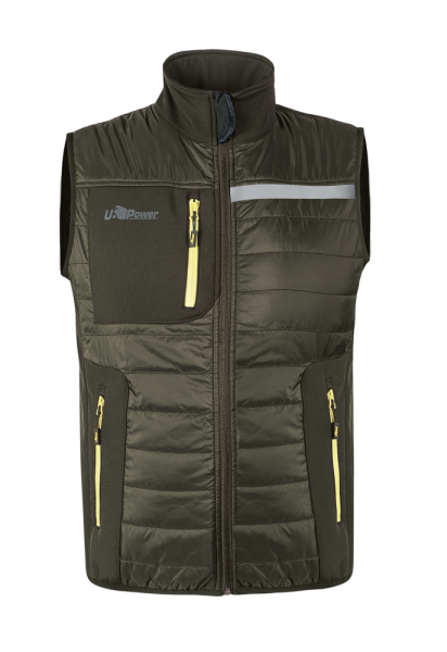 Giacca smanicata da lavoro con imbottitura in grafene dalle proprietà termo-regolatrici in grado di espellere il calore in eccesso e mantenere il corpo in un micro-clima ideale in caso di basse temperature. Giacca smanicata impermeabile con proprietà batterio-statiche che garantiscono il controllo dei cattivi odori e una migliore igiene del capo. Giacca smanicata multi-tasche con due tasche con zip sul davanti, una tasca verticale con zip sul petto e una tasca posteriore con chiusura in velcro. Fondo capo e giromanica in tessuto stretch, inserti laterali in morbido Softshell elasticizzato che garantisce un taglio ottimale e grande comfort. Wall è uno smanicato con logo “U-Power” riflettente stampato sul lato destro del petto e stampa “U-Supremacy” sulla schiena.