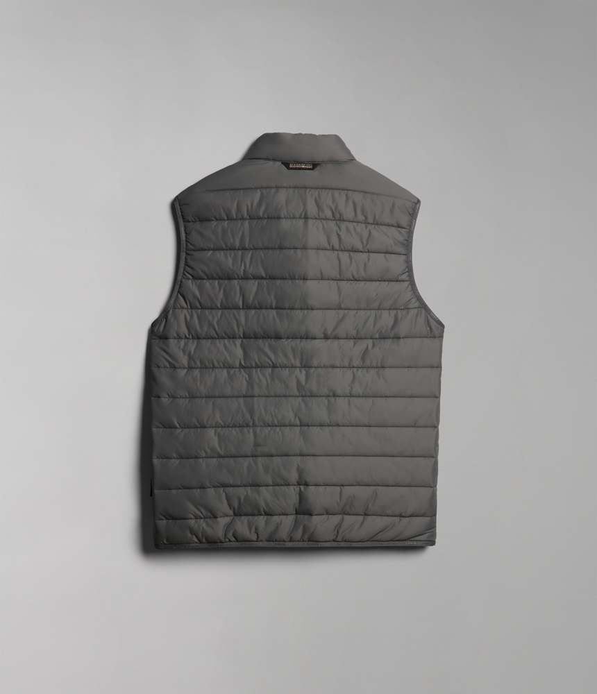 100% poliammide riciclato. Presenta un’imbottitura down-free riciclata isolante, leggera ma calda. Questo modello estremamente resistente agli strappi è completato da una chiusura con zip e un collo alto.