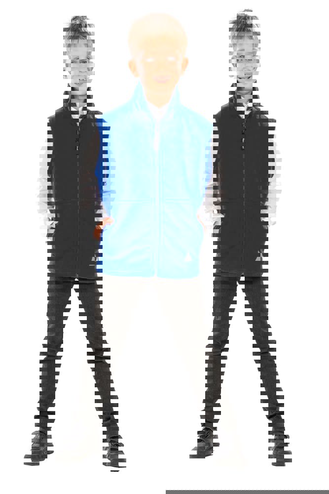 100% Poliestere. Trattamento anti-pilling. 2 tasche laterali con zip. Triangolo riflettente davanti e dietro.