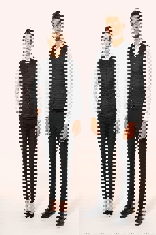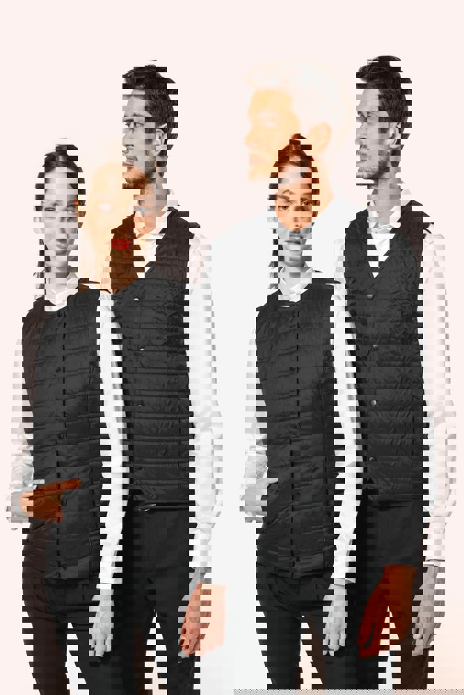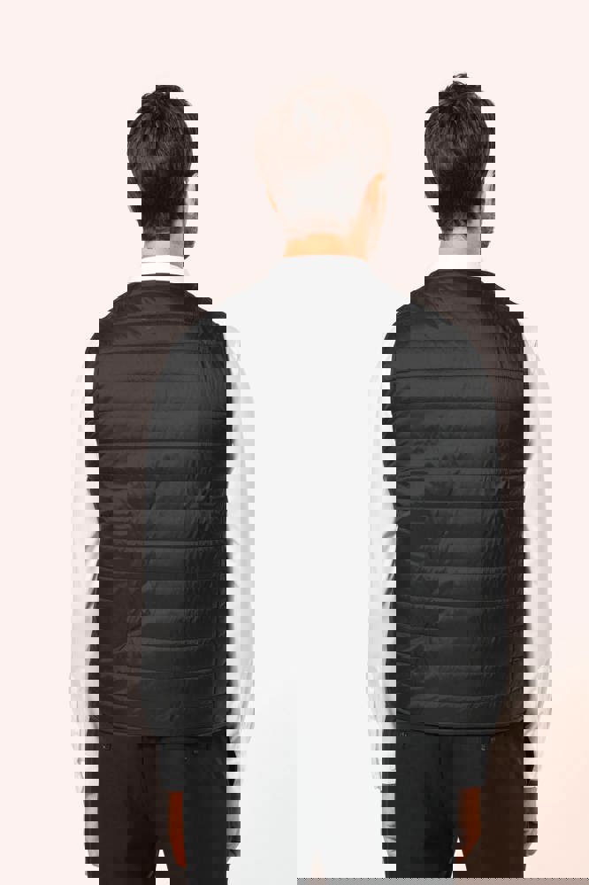 100% poliammide. Imbottitura interna in Thinsulate®. Due tasche laterali. Chiusura con automatici tono su tono. Zip per la personalizzazione sul lato sinistro. Molto sottile per poterlo indossare sotto a una giacca. Nessuna etichetta con il nome del marchio; solo una piccola etichetta con l'indicazione della taglia per semplificare la personalizzazione.