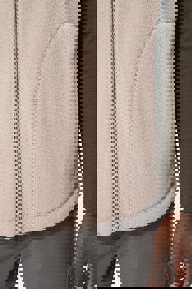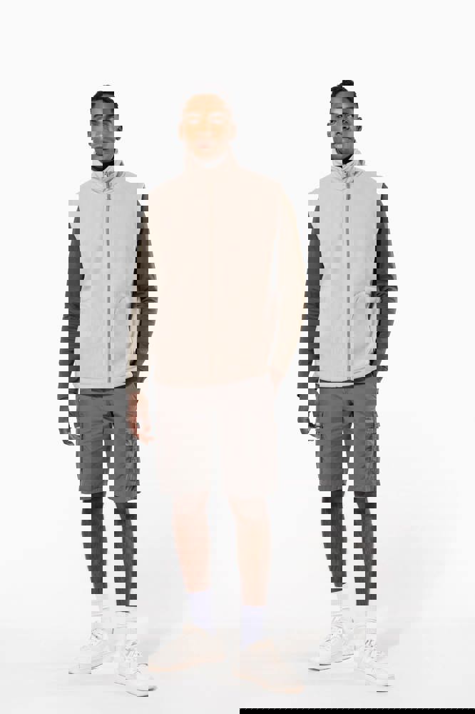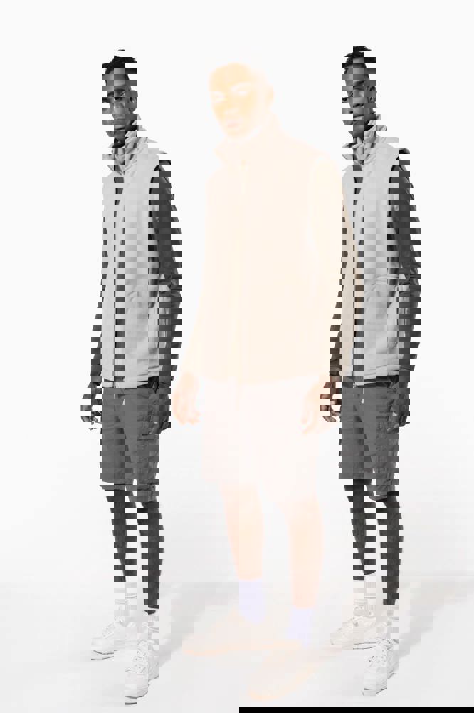 100% poliestere micropile. Tessuto anti-pilling. 2 tasche laterali con cuciture in contrasto. Chiusura con zip.