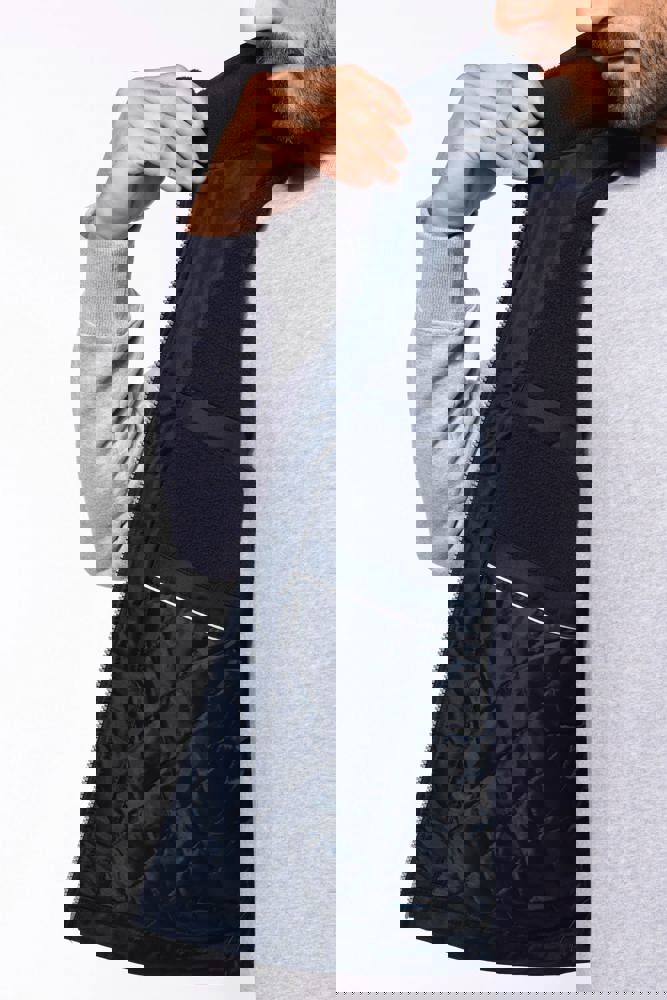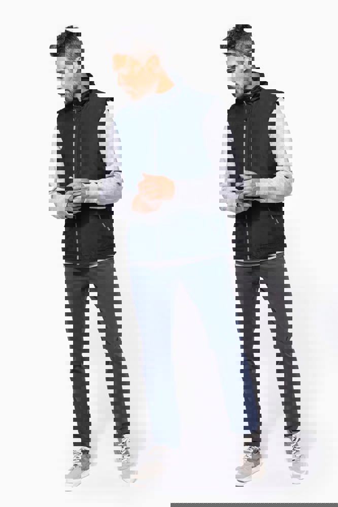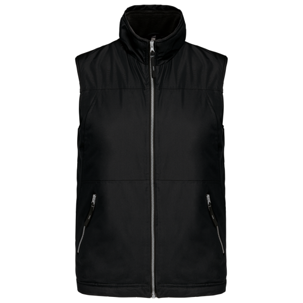 Esterno: 100% poliestere con rivestimento in PVC 520 gr/m². Imbottitura poliammide e pile. Inserti sul davanti. Tasche a marsupio con zip. Tasca obliqua e tasche laterali. Chiusura con zip. Interno con fodera in pile nella parte superiore del gilet e al collo. Fodera in poliammide nelle parte inferiore del gilet. Tasca interna per il cellulare. Zip di accesso per facilitare la personalizzazione. Coulisse in vita e stopper.