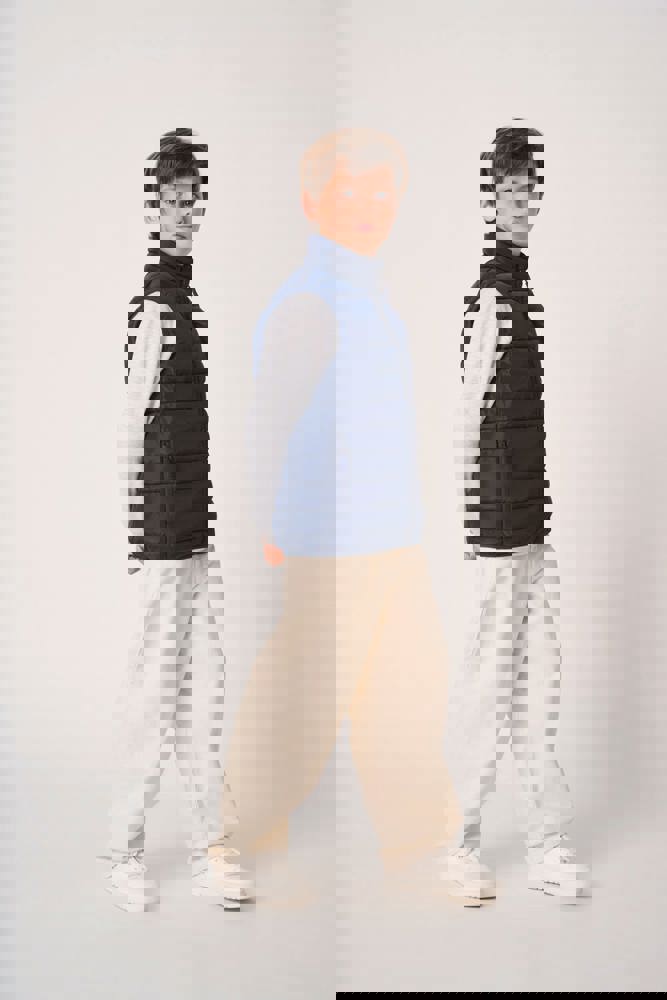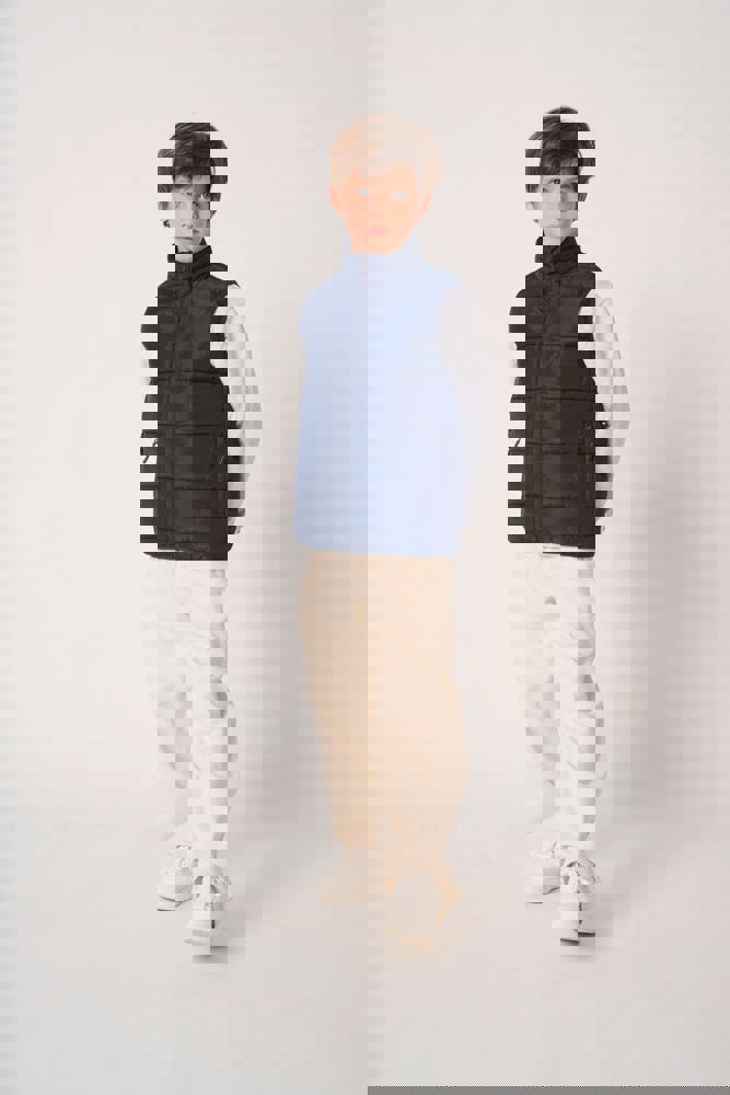 100% poliestere 290T. Imbottitura interna: 100% poliestere. Fodera: 100% poliestere 290T tono su tono. Taglio dritto. Collo alto. Due tasche laterali foderate in 290T, con zip in nylon e tiretti tono su tono. Due tasche interne. Chiusura con zip in nylon tono su tono con protezione per il mento e tiretto. Trapuntatura orizzontale. Fascia di trapuntatura più ampia di 9 cm sul davanti e 10 cm sul retro, ideale per la personalizzazione. Finitura con bordino elastico tono su tono a giromanica e fondo capo. Passante interno al collo. Prodotto comprimibile nel proprio sacchetto. Etichetta del marchio staccabile. Imbottitura iniettata: il peso può variare in base alle zone del capo. Il peso totale è indicativo.