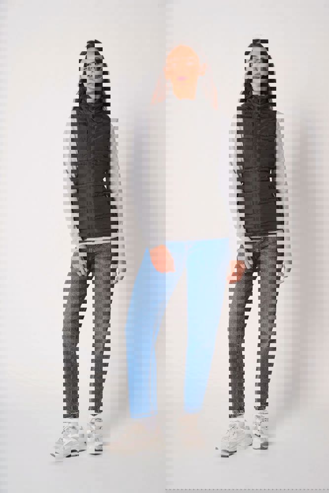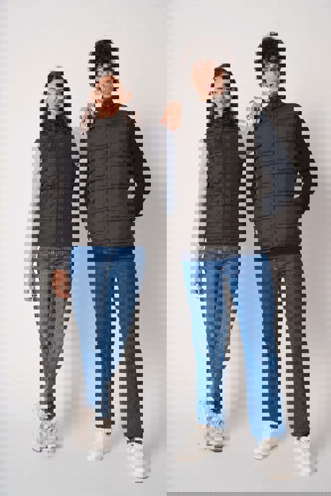 100% poliestere 290T. Imbottitura interna: 100% poliestere. Fodera: 100% poliestere 290T tono su tono. Taglio dritto. Collo alto. Due tasche laterali foderate in 290T, con zip in nylon e tiretti tono su tono. Due tasche interne. Chiusura con zip in nylon tono su tono con protezione per il mento e tiretto. Trapuntatura orizzontale. Fascia di trapuntatura più ampia di 11 cm sul davanti e 14,5 cm sul retro, ideale per la personalizzazione. Finitura con bordino elastico tono su tono a giromanica e fondo capo. Passante interno al collo. Prodotto comprimibile nel proprio sacchetto. Etichetta del marchio staccabile. Imbottitura iniettata: il peso può variare in base alle zone del capo. Il peso totale è indicativo.