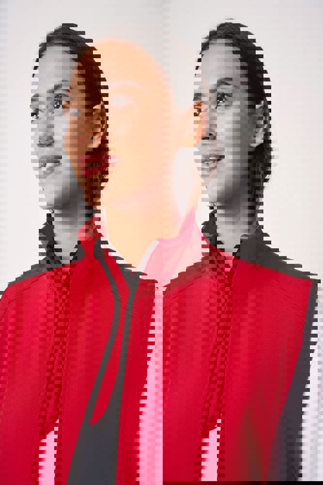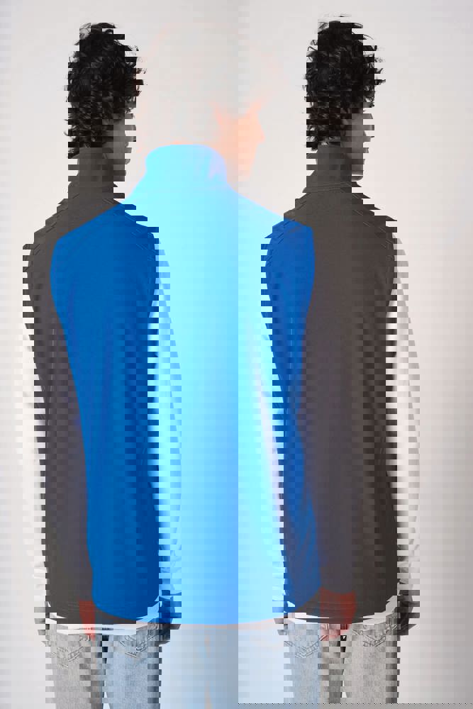 95% poliestere / 5% elastan. Softshell a 2 strati con trattamento idrorepellente. Interno: micropile nero 100% poliestere. Taglio dritto. Due tasche laterali foderate in polytricot con zip in nylon e tiretti neri. Chiusura con zip in nylon nera con protezione per il mento e tiretto. Inserti su spalle e schiena con impunture. Nastro di rinforzo interno al collo nero. Orli giromanica e fondo capo con finitura a doppio ago. Etichetta del marchio staccabile.
