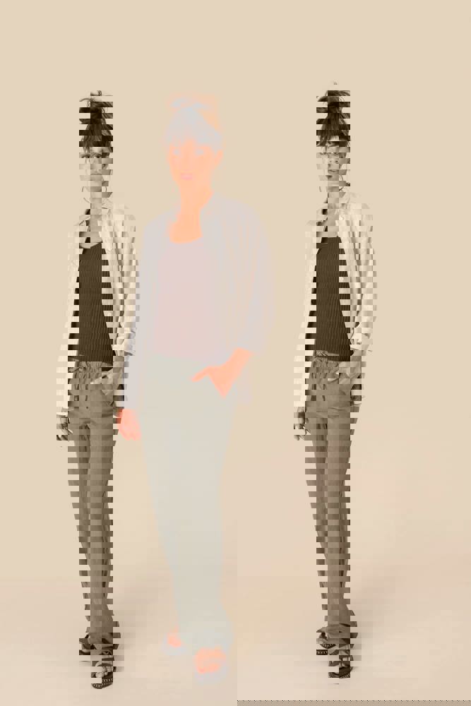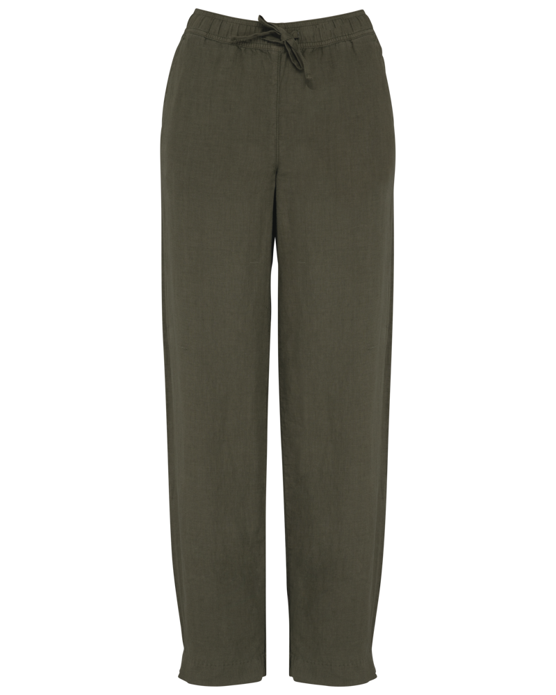 100% lino. Tessuto. Aspetto slavato. Taglio ampio. Girovita con impunture, elasticizzato con... altro