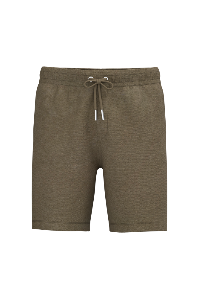 80% cotone biologico / 20% poliestere riciclato post-consumo. Capo fabbricato in Portogallo. Cotone pettinato. Spugna. Lavaggio agli enzimi. Vita elasticizzata con coulisse e cucitura di arresto al centro della schiena. Occhielli e puntali in metallo. Finta patta fantasia. Tasche laterali e tasca posteriore a filetto. Orlo a doppia impuntura a fondo gamba.