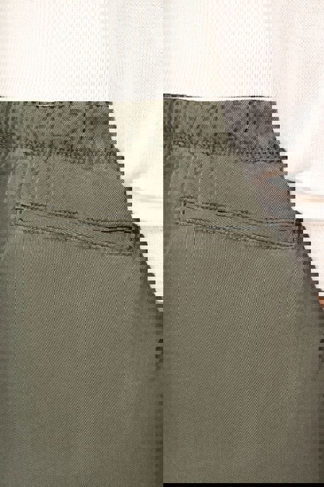 100% Lyocell TENCEL™ * . * TENCEL™ è un marchio di Lenzing AG. Taglio leggermente svasato. Girovita elasticizzato sul retro per un maggior comfort. Due tasche a filetto posteriori con angoli rinforzati. Due tasche laterali. Nervature cucite a forca davanti, dietro, sui lati e sul cavallo. Due pince anteriori. Tinto in capo dopo il montaggio: i colori possono variare tra un prodotto e l’altro. A contatto con superfici o indumenti chiari potrebbero stingere
