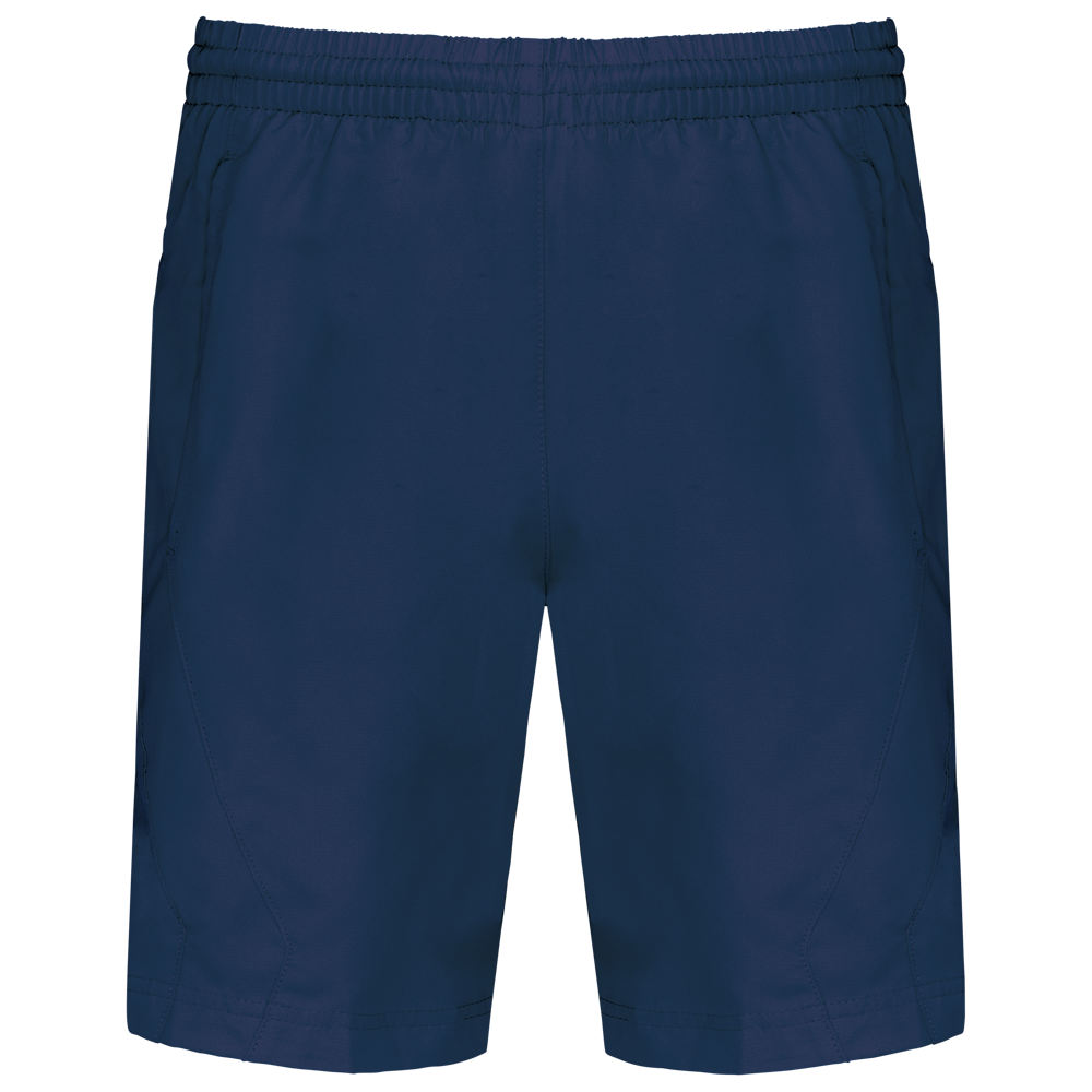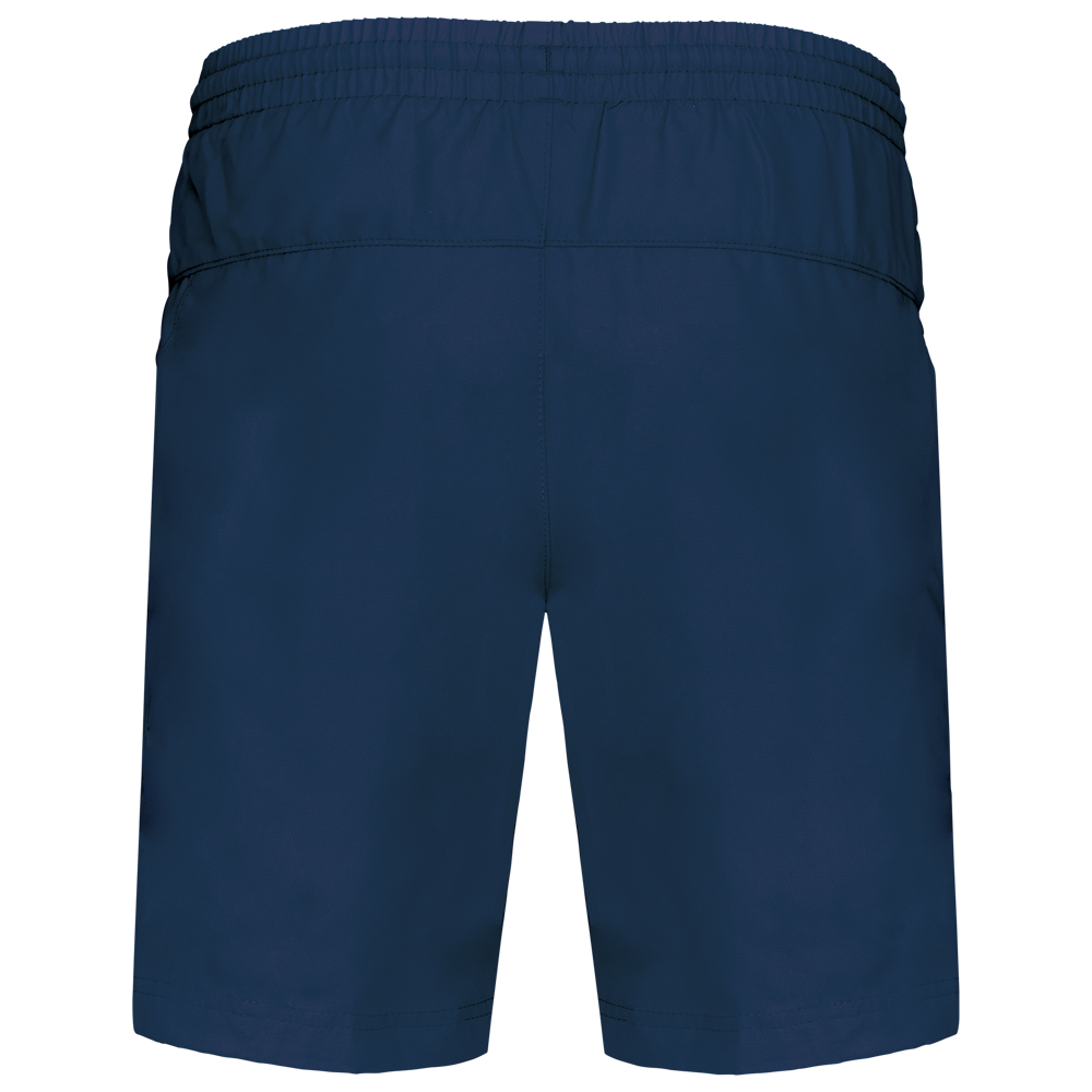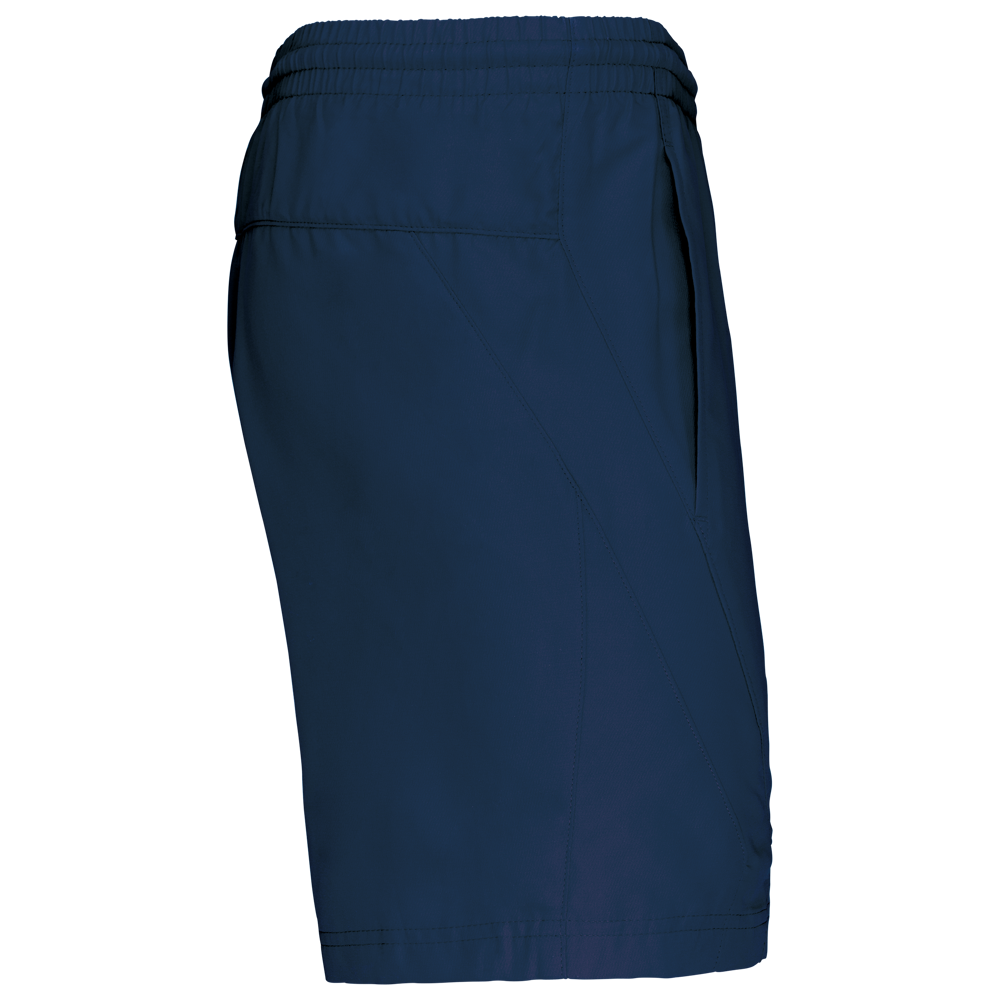 100% Poliestere. 2 tasche laterali. Cintura elasticizzata con coulisse. Tessuto in rete interno. Fodera in rete.