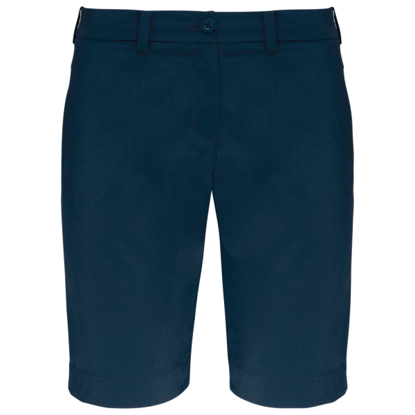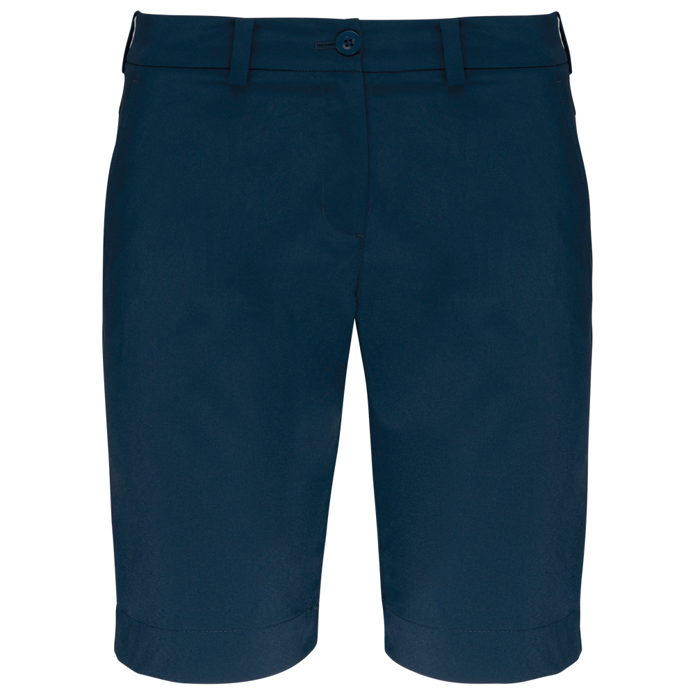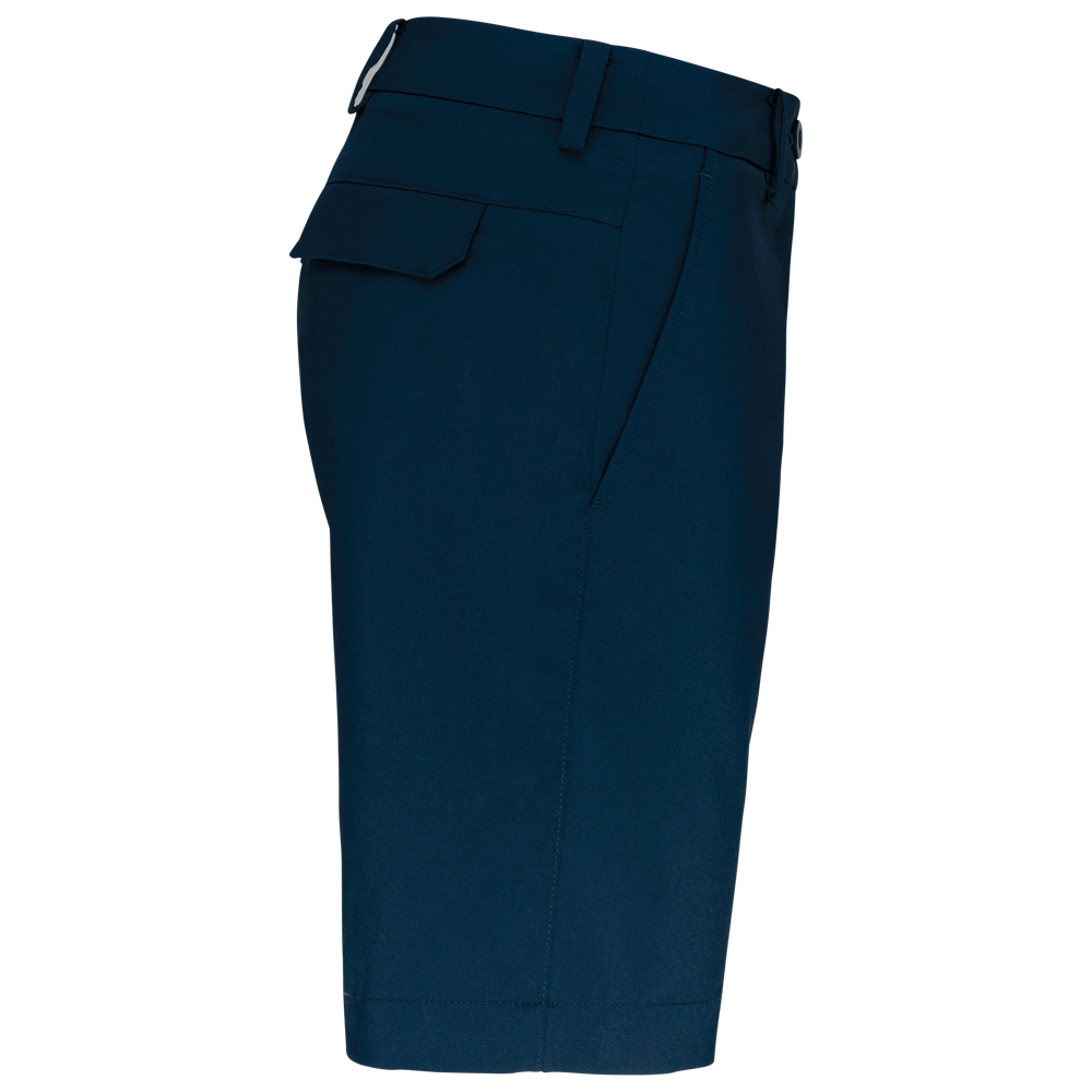 96% Poliestere / 4% Elastan. Tessuto morbido e resistente all'acqua per il massimo comfort. Design elegante. Cintura con passanti, 2 tasche laterali e 2 tasche profonde a filetto con pattina sul retro.