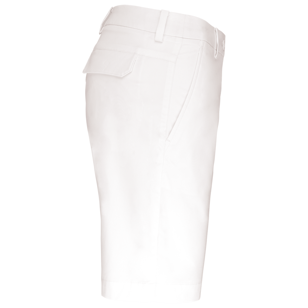 96% Poliestere / 4% Elastan. Tessuto morbido e resistente all'acqua per il massimo comfort. Design elegante. Cintura con passanti, 2 tasche laterali e 2 tasche profonde a filetto con pattina sul retro.