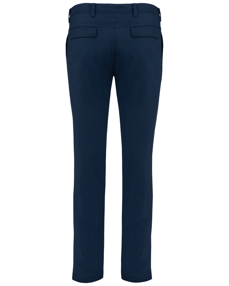 96% Poliestere / 4% Elastan. Tessuto morbido e resistente all'acqua per il massimo comfort. Design elegante. Cintura con passanti, 2 tasche laterali e 2 tasche profonde a filetto con pattina sul retro.