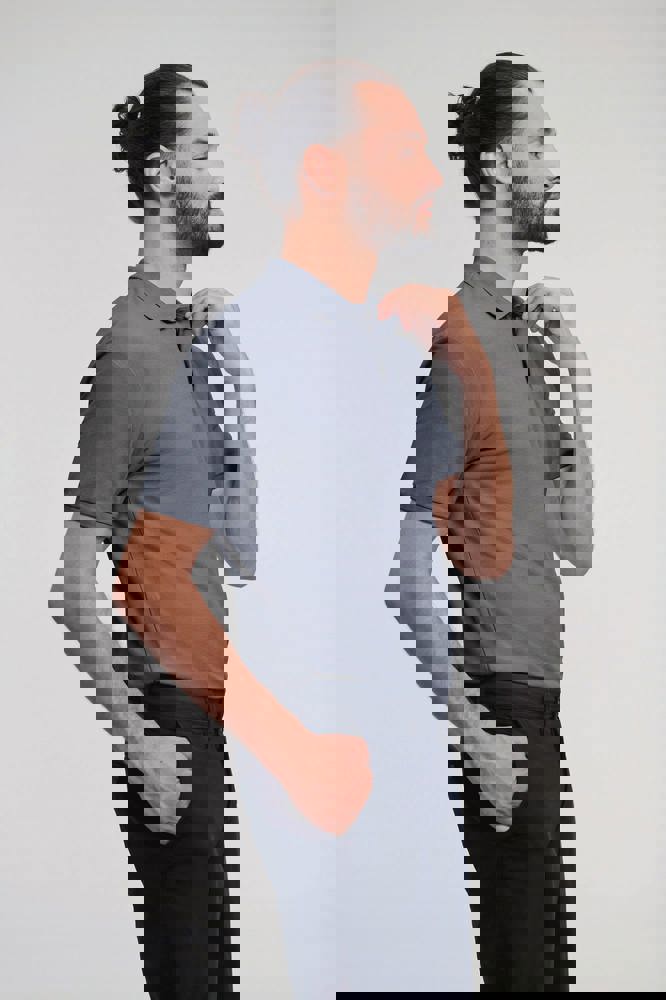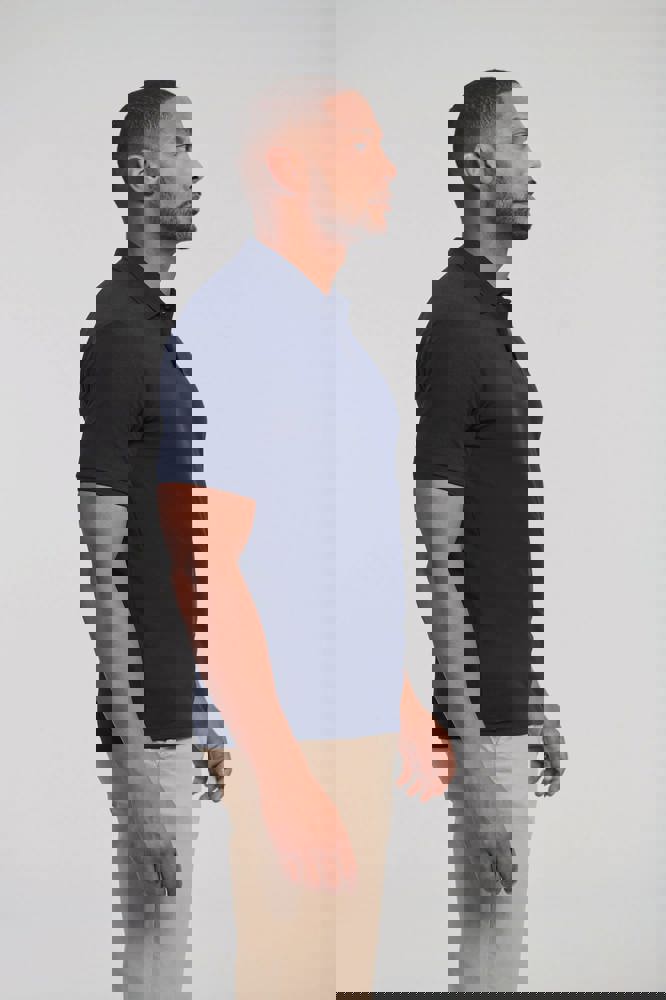 65% poliestere / 35% cotone. Pattina con 2 bottoni. Bottoni tono su tono. Cuciture rinforzate a livello delle spalle. Nastrino di rinforzo sul collo. Taglio classico. Lavabile a 60°.