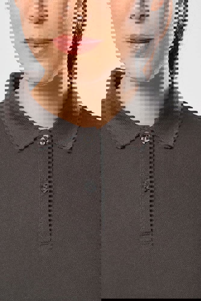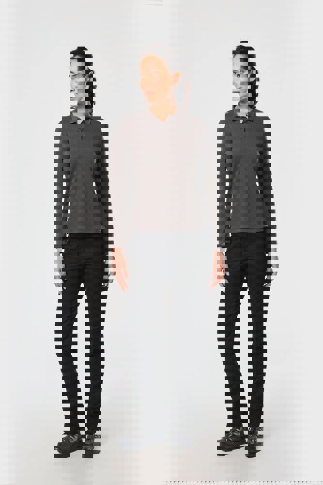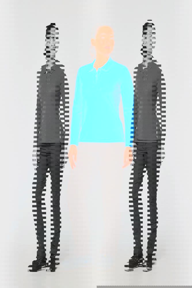 65% poliestere / 35% cotone. Cotone pettinato piqué. Lavabile a 60 °C. Trattamento antibatterico e antipilling. Pattina con 2 bottoni tono su tono. Colletto a costine con nastrino di rinforzo a contrasto. Spacchetti laterali con nastrino a contrasto per un maggior comfort. Finitura a doppia impuntura a fondo manica e fondo capo. Adatto a un uso professionale.