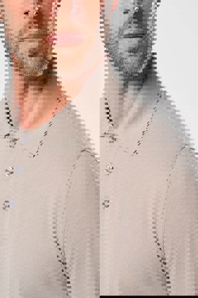 65% poliestere / 35% cotone. Cotone pettinato piqué. Lavabile a 60 °C. Trattamento antibatterico e antipilling. Pattina con 3 bottoni tono su tono. Colletto a costine con nastrino di rinforzo a contrasto. Costine a fondo manica. Spacchetti laterali con nastrino a contrasto per un maggior comfort. Finitura a doppia impuntura a fondo capo. Adatta a un uso professionale.