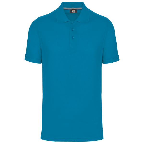 65% poliestere / 35% cotone. Cotone pettinato piqué. Lavabile a 60 °C. Trattamento antibatterico e antipilling. Pattina con 3 bottoni tono su tono. Colletto a costine con nastrino di rinforzo a contrasto. Costine a fondo manica. Spacchetti laterali con nastrino a contrasto per un maggior comfort. Finitura a doppia impuntura a fondo capo. Adatto a un uso professionale.