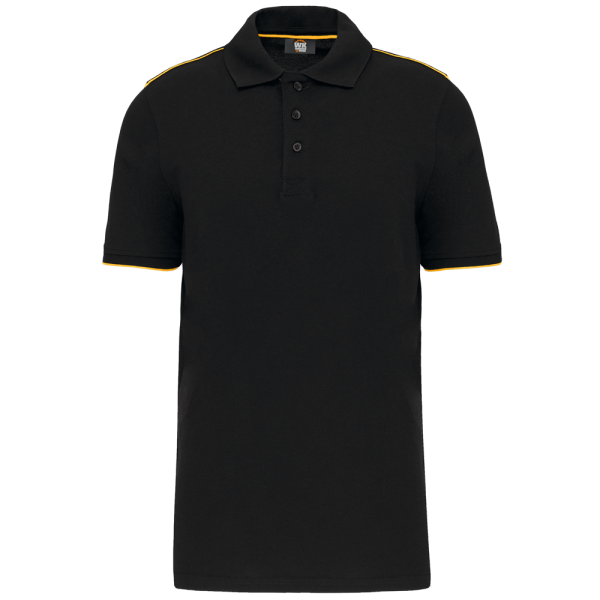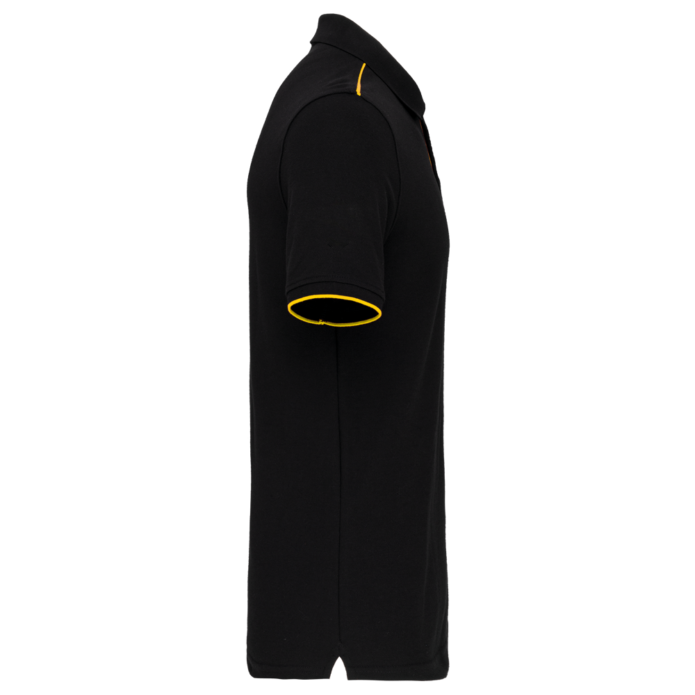 65% poliestere / 35% cotone. Cotone pettinato piqué. Lavabile a 60 °C. Trattamento antipilling. Pattina con 3 bottoni con nastrino interno di rinforzo a contrasto. Colletto a costine con nastrino di rinforzo. Dettaglio a contrasto su interno collo e spalle. Finiture fondo manica a costine con bordino rigato a contrasto. Spacchetti laterali con nastrino a motivo spigato a contrasto per un maggior comfort. Finitura a doppia impuntura a fondo capo. Ideale per un uso quotidiano.