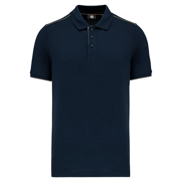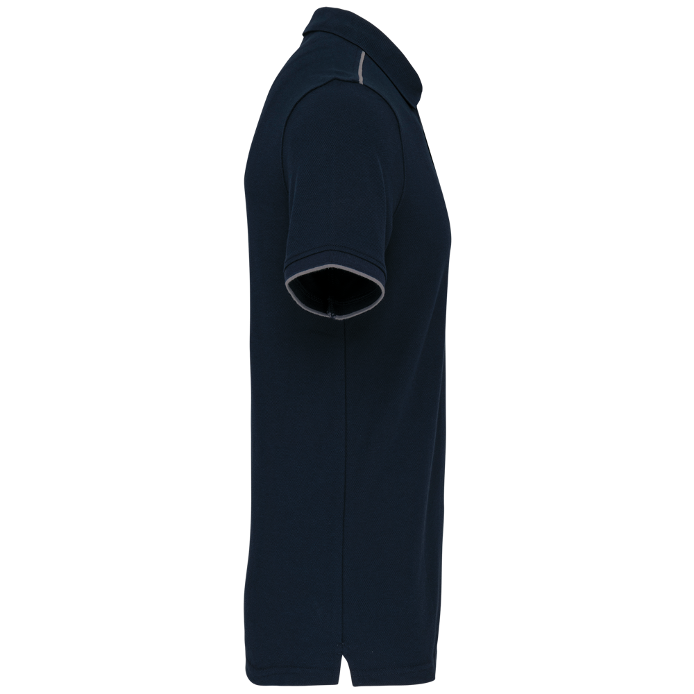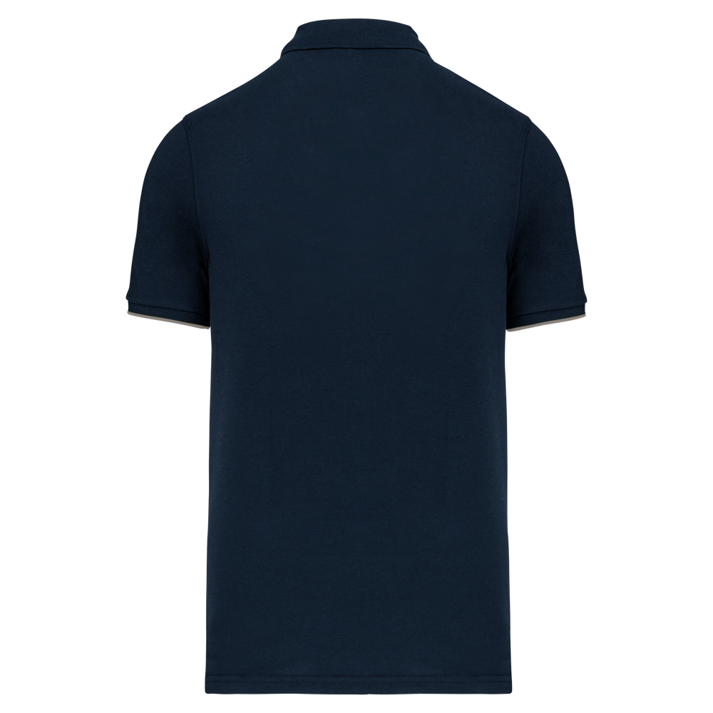 65% poliestere / 35% cotone. Cotone pettinato piqué. Lavabile a 60 °C. Trattamento antipilling. Pattina con 3 bottoni con nastrino interno di rinforzo a contrasto. Colletto a costine con nastrino di rinforzo. Dettaglio a contrasto su interno collo e spalle. Finiture fondo manica a costine con bordino rigato a contrasto. Spacchetti laterali con nastrino a motivo spigato a contrasto per un maggior comfort. Finitura a doppia impuntura a fondo capo. Ideale per un uso quotidiano.