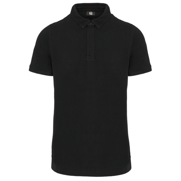 100% cotone. (90% cotone / 10% viscosa per il colore chiné). Piqué in cotone pettinato. Lavabile a 60 °C (40 °C per Oxford Grey). Listino collo a costine. Pattina con 3 automatici. Fondo manica a costine. Spacchetti laterali. Finitura a doppia impuntura a fondo capo.