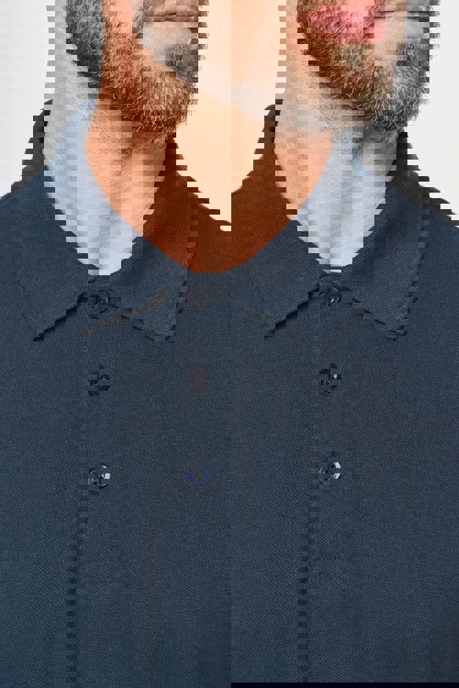 Tinta unita : 60% cotone biologico / 40% poliestere riciclato. Tinta Oxford Grey : 90% cotone biologico / 10% viscosa. Tessuto maglia piqué. Lavabile a 60°. Taglio dritto. Colletto e fondo manica a costine 1x1 con nastrino di rinforzo con motivo spigato a contrasto arancione. Pattina con 3 bottoni tono su tono. Prima asola orizzontale. Spacchetti laterali con nastrino a motivo spigato a contrasto arancione. Finitura a doppia impuntura a fondo capo. Etichetta con il nome del marchio staccabile, per semplificare la personalizzazione.
