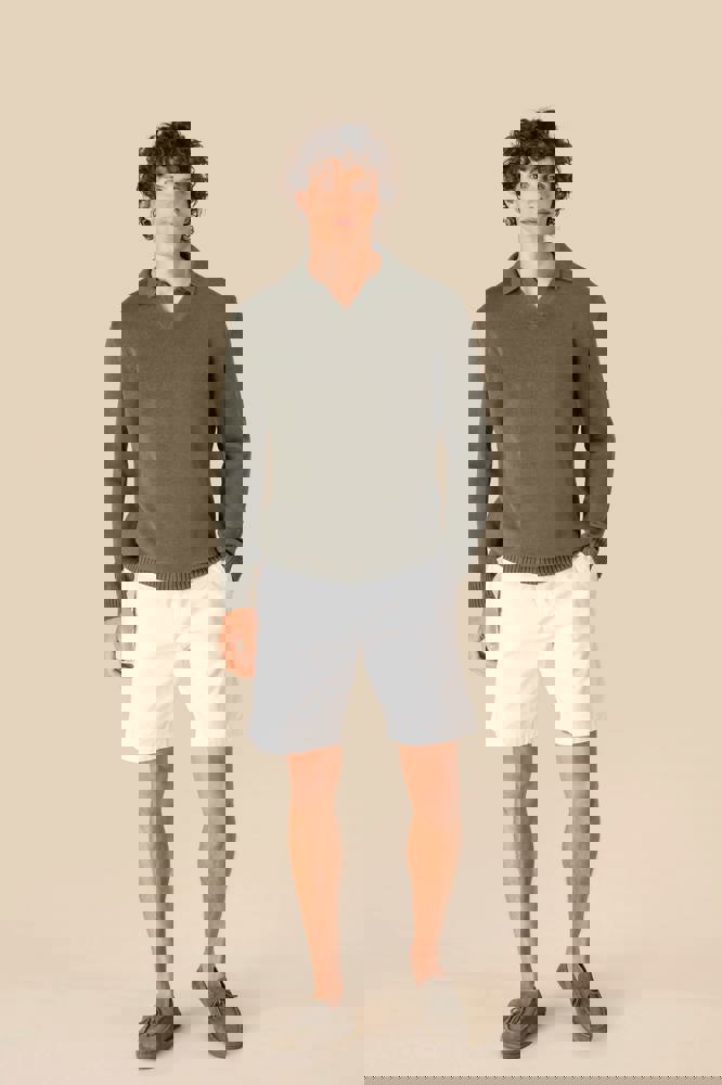 100% cotone. Cotone pettinato. Maglia. Calibro 7. Taglio dritto. Collo polo e patta a V senza... altro