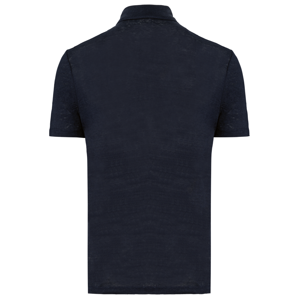 100% lino. Maglia. Taglio dritto. Collo nel tessuto principale con listino. Pattina a due bottoni con impuntura tono su tono in plastica riciclata. Bottoni di plastica riciclata tono su tono. Orlo a doppia impuntura a fondo manica e fondo capo.