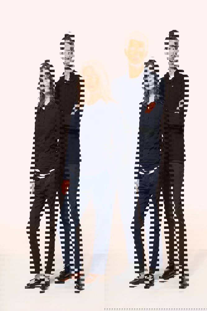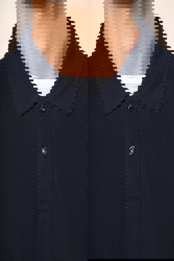 95% cotone / 5% elastan. Piqué in cotone Supima®. Tessuto di elevata finezza e qualità, morbido al tatto e setoso. Colletto a costine 1 x 1, nastrino di rinforzo tono su tono all'interno del collo. Pattina con 2 bottoni tono su tono. Rinforzo della cucitura sulla spalla con striscia in silicone. Finitura fondo manica e fondo capo con orlo a doppia sovracucitura. Nessuna etichetta con il nome del marchio sul collo; solo una piccola etichetta con l'indicazione della taglia per semplificare la personalizzazione.