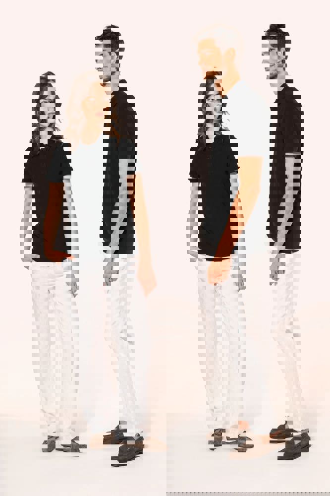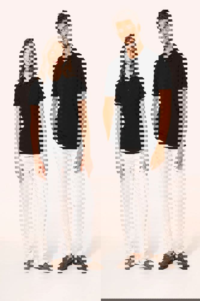 95% cotone / 5% elastan. Piqué in cotone Supima®. Tessuto di elevata finezza e qualità, morbido al tatto e setoso. Colletto a costine 1 x 1, nastrino di rinforzo tono su tono all'interno del collo. Pattina con 2 bottoni tono su tono. Rinforzo della cucitura sulla spalla con striscia in silicone. Finitura fondo manica e fondo capo con orlo a doppia sovracucitura. Nessuna etichetta con il nome del marchio sul collo; solo una piccola etichetta con l'indicazione della taglia per semplificare la personalizzazione.