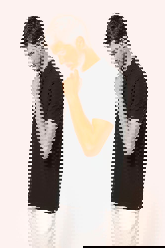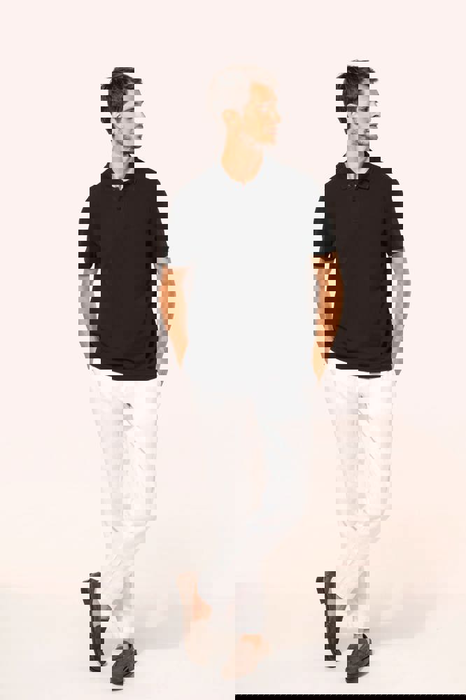 95% cotone / 5% elastan. Piqué in cotone Supima®. Tessuto di elevata finezza e qualità, morbido al tatto e setoso. Colletto a costine 1 x 1, nastrino di rinforzo tono su tono all'interno del collo. Pattina con 2 bottoni tono su tono. Rinforzo della cucitura sulla spalla con striscia in silicone. Finitura fondo manica e fondo capo con orlo a doppia sovracucitura. Nessuna etichetta con il nome del marchio sul collo; solo una piccola etichetta con l'indicazione della taglia per semplificare la personalizzazione.