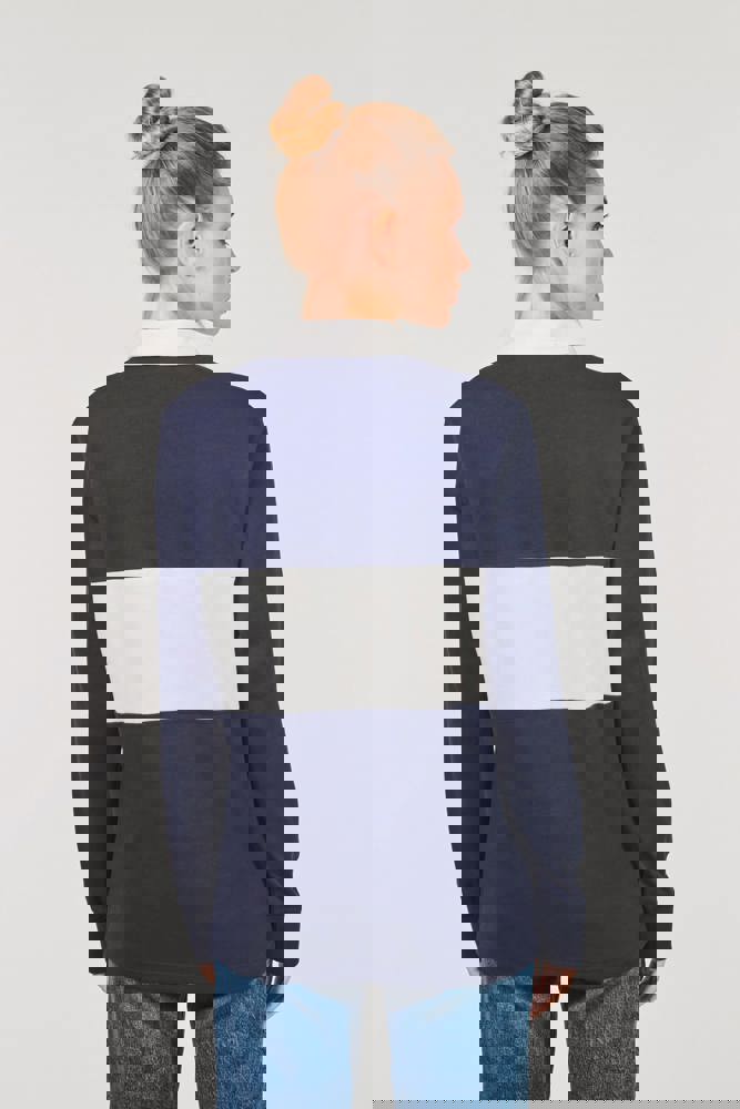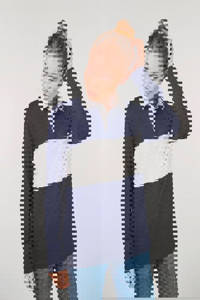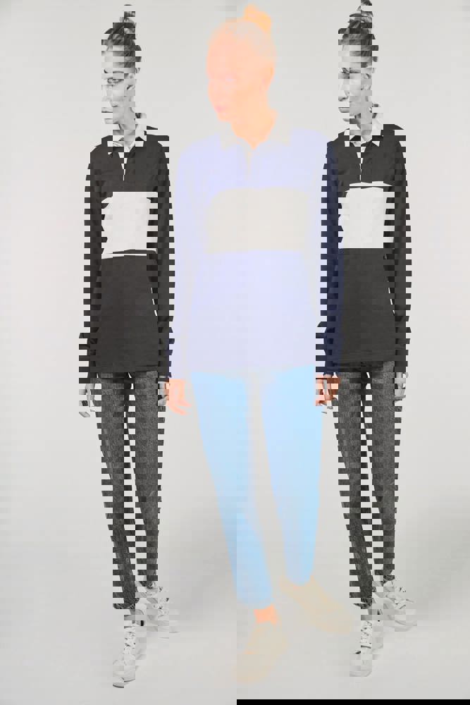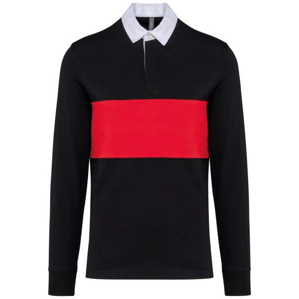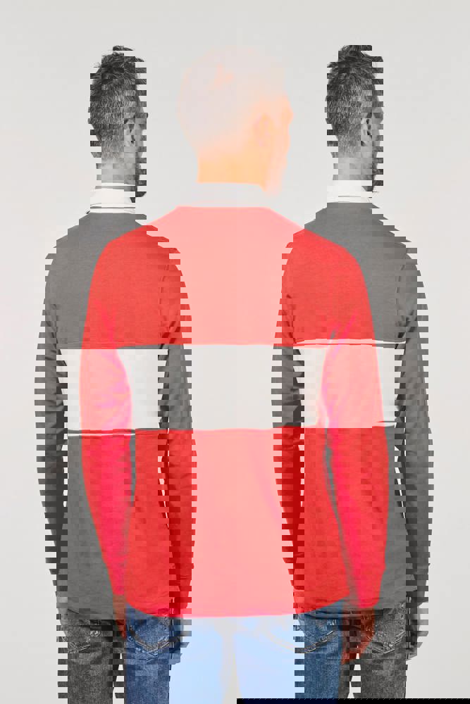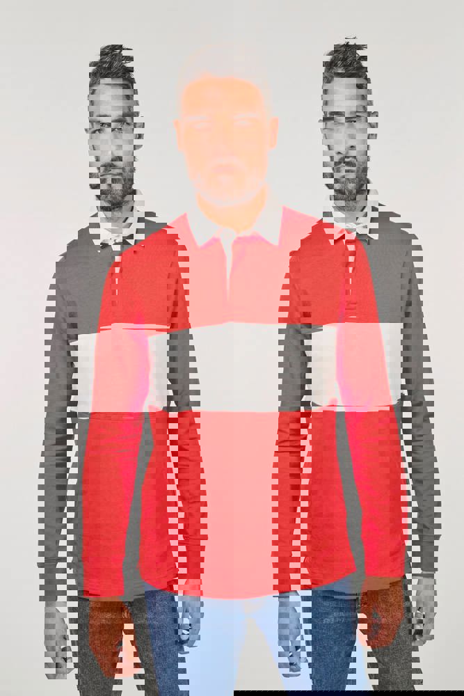100% cotone. Tessuto jersey. Taglio regolare. Colletto e pattina interna in twill di cotone bianco. Pattina con 3 bottoni in caucciù. Polsini a costine 1 x 1. Nastrino di rinforzo del collo a motivo spigato tono su tono. Nastrino centrale anteriore e posteriore in colore a contrasto. Fondo capo con spacchi laterali e motivo spigato tono su tono. Finitura a doppia impuntura su giromanica e fondo manica. Finiture a doppia impuntura a fondo capo. Etichetta con il nome della marca rimovibile.