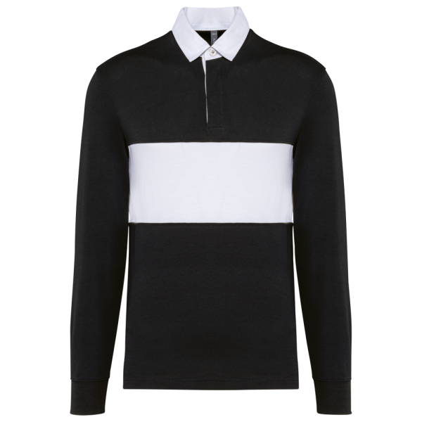 100% cotone. Tessuto jersey. Taglio regolare. Colletto e pattina interna in twill di cotone bianco. Pattina con 3 bottoni in caucciù. Polsini a costine 1 x 1. Nastrino di rinforzo del collo a motivo spigato tono su tono. Nastrino centrale anteriore e posteriore in colore a contrasto. Fondo capo con spacchi laterali e motivo spigato tono su tono. Finitura a doppia impuntura su giromanica e fondo manica. Finiture a doppia impuntura a fondo capo. Etichetta con il nome della marca rimovibile.