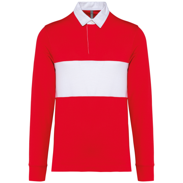 100% cotone. Tessuto jersey. Taglio regolare. Colletto e pattina interna in twill di cotone bianco. Pattina con 3 bottoni in caucciù. Polsini a costine 1 x 1. Nastrino di rinforzo del collo a motivo spigato tono su tono. Nastrino centrale anteriore e posteriore in colore a contrasto. Fondo capo con spacchi laterali e motivo spigato tono su tono. Finitura a doppia impuntura su giromanica e fondo manica. Finiture a doppia impuntura a fondo capo. Etichetta con il nome della marca rimovibile.