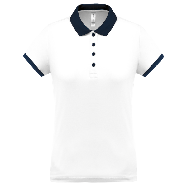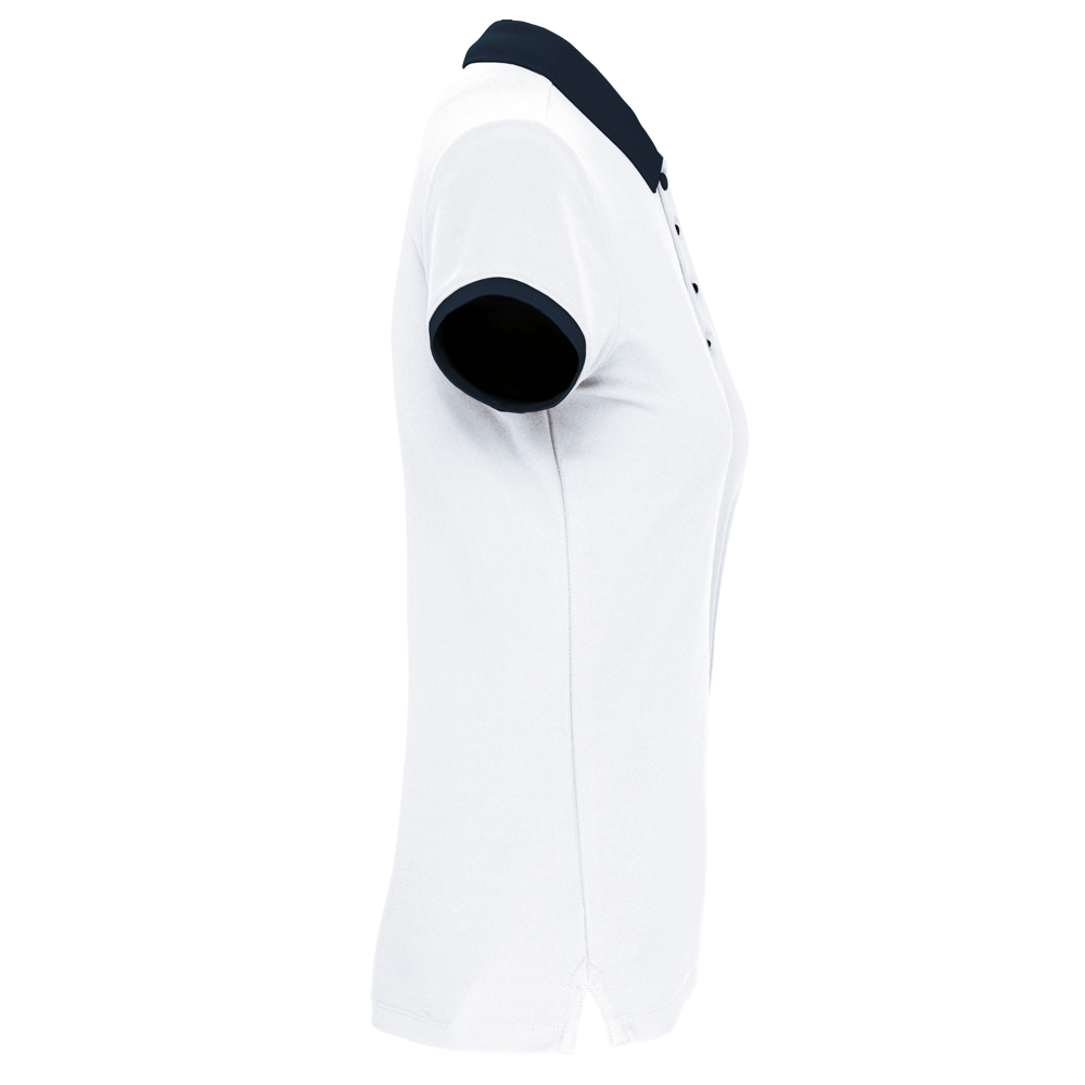 100% poliestere piqué Cool Plus®. Taglio sagomato e look moderno. Colletto e fondo manica a costine a contrasto. Pattina a 4 bottoni (a contrasto o tinta unita a seconda del modello). Spacchetti laterali.
