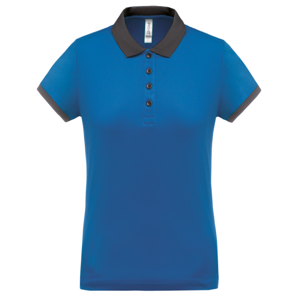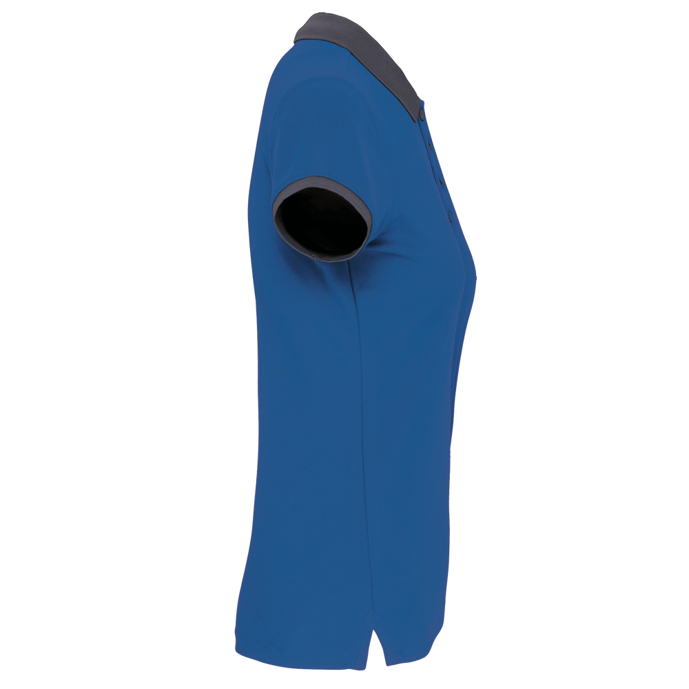 100% poliestere piqué Cool Plus®. Taglio sagomato e look moderno. Colletto e fondo manica a costine a contrasto. Pattina a 4 bottoni (a contrasto o tinta unita a seconda del modello). Spacchetti laterali.