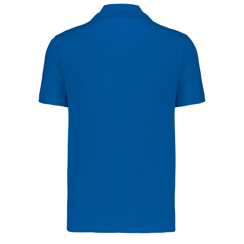100% poliestere interlock. Tessuto ad asciugatura rapida. Colletto a costine. Pattina a contrasto con 3 bottoni. Nastrino di rinforzo a contrasto sul collo e sugli spacchetti laterali. Dettaglio a contrasto sulle spalle. Finitura a doppio ago a fondo manica e fondo capo.