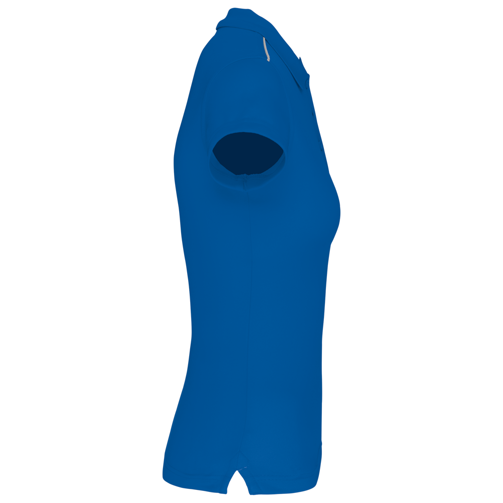 100% Poliestere Interlock Quick Dry ®. Collo in costina a 3 bottoni. Nastrino al collo in contrasto e spacchetti laterali. Piping in contrasto alle spalle. Cuciture a doppio ago alle maniche e sul fondo.