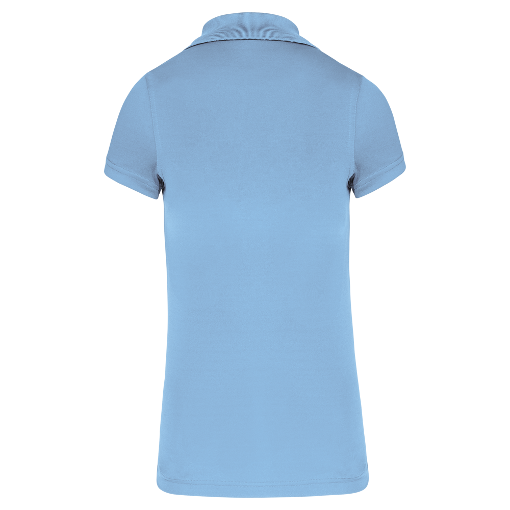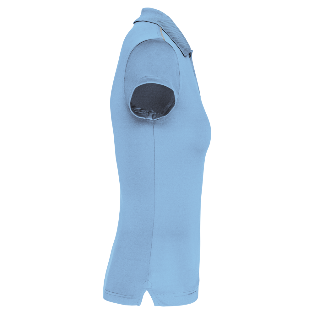 100% Poliestere Interlock Quick Dry ®. Collo in costina a 3 bottoni. Nastrino al collo in contrasto e spacchetti laterali. Piping in contrasto alle spalle. Cuciture a doppio ago alle maniche e sul fondo.