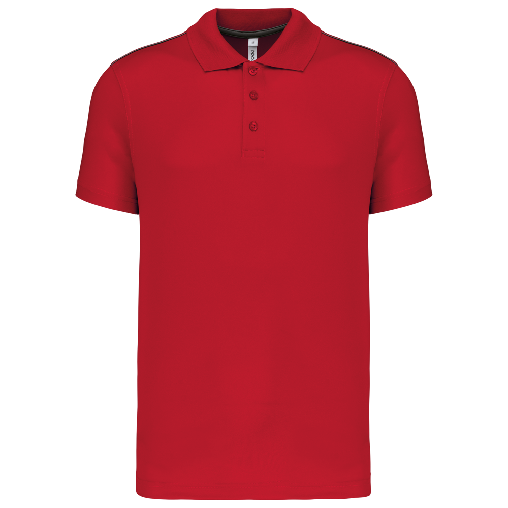 100% Poliestere Interlock Quick Dry ®. Collo in costina a 3 bottoni. Nastrino al collo in contrasto e spacchetti laterali. Piping in contrasto alle spalle. Cuciture a doppio ago alle maniche e sul fondo.