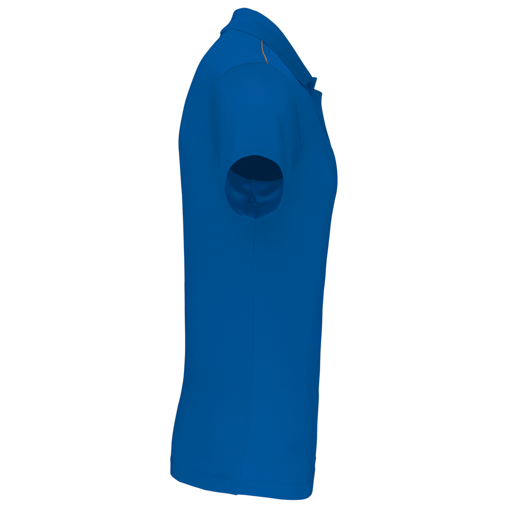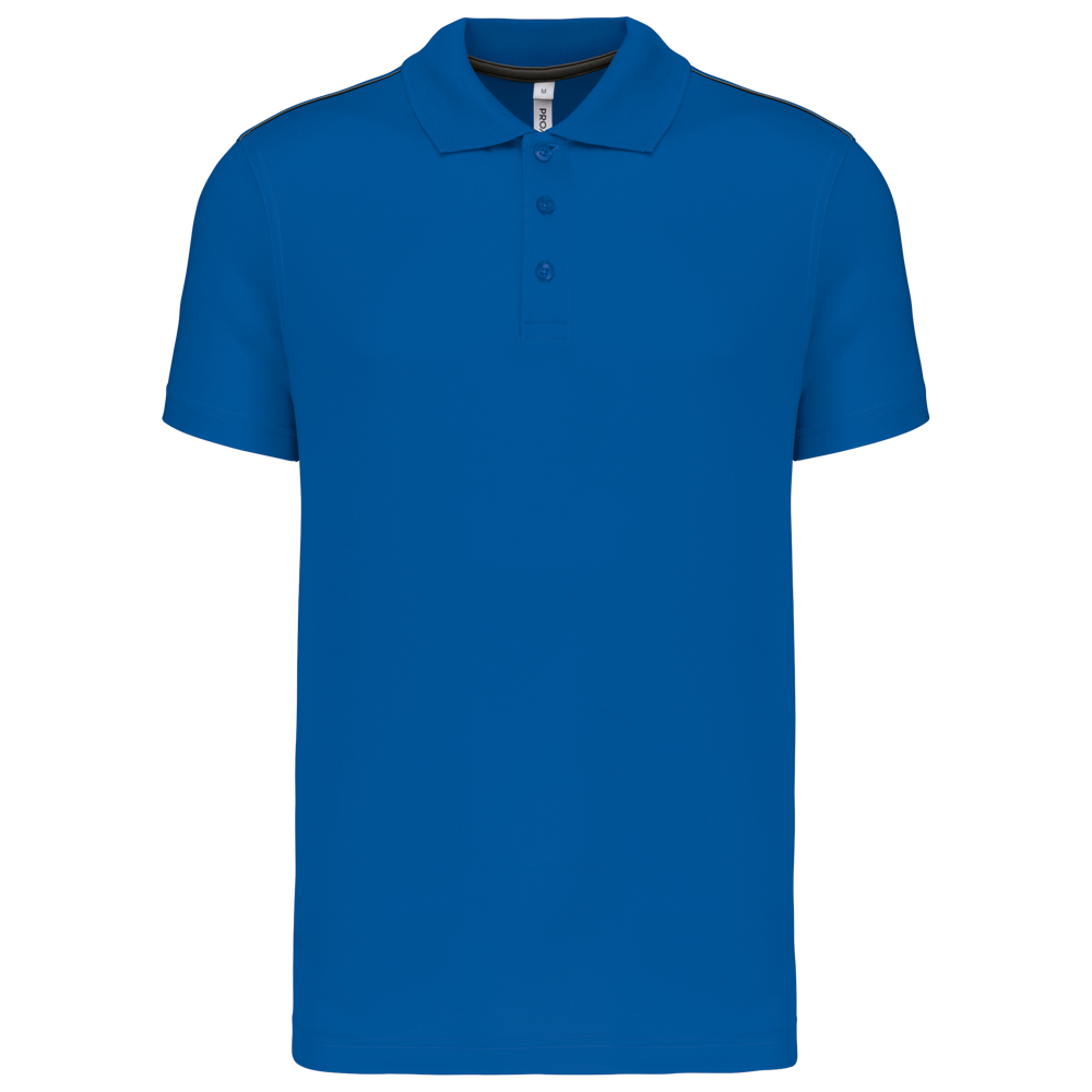 100% Poliestere Interlock Quick Dry ®. Collo in costina a 3 bottoni. Nastrino al collo in contrasto e spacchetti laterali. Piping in contrasto alle spalle. Cuciture a doppio ago alle maniche e sul fondo.