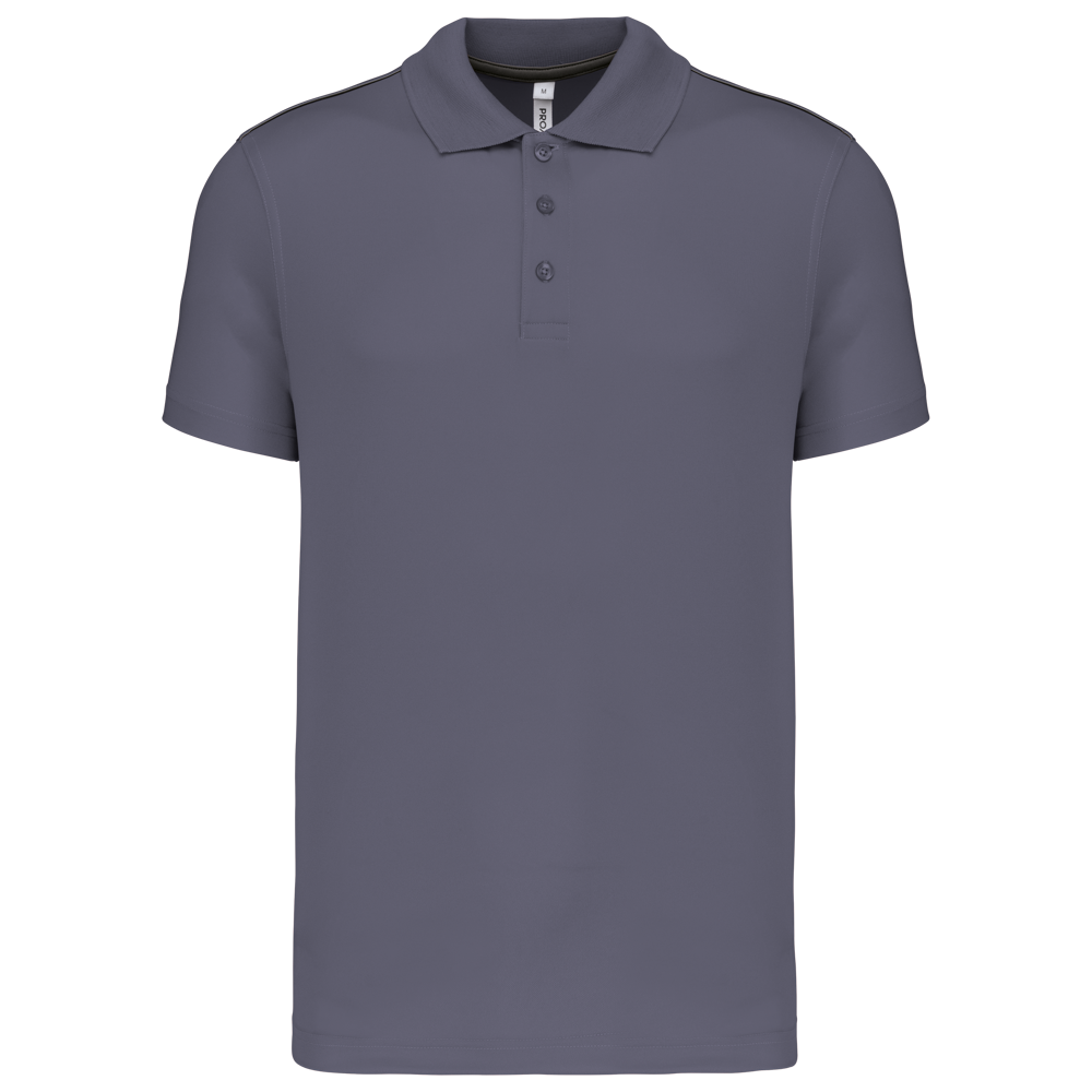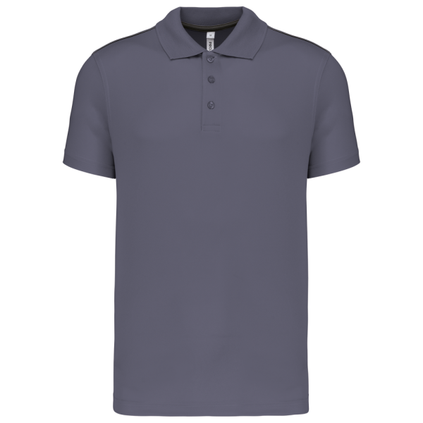 100% Poliestere Interlock Quick Dry ®. Collo in costina a 3 bottoni. Nastrino al collo in contrasto e spacchetti laterali. Piping in contrasto alle spalle. Cuciture a doppio ago alle maniche e sul fondo.
