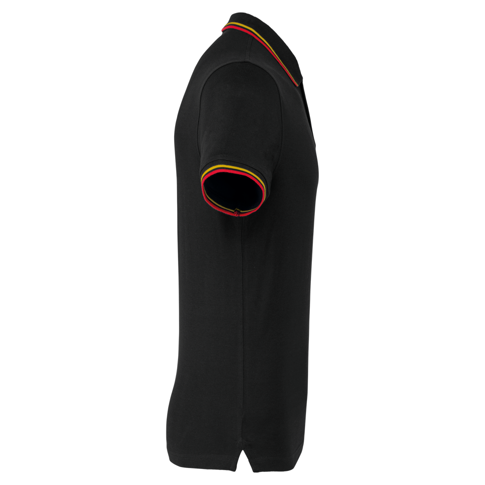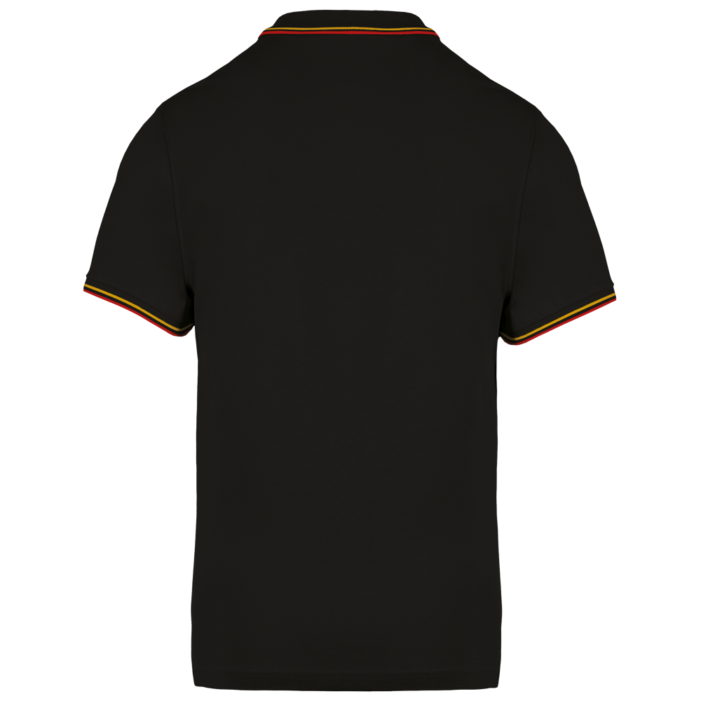 100% cotone piqué. 3 bottoni. Collo in contrasto, in costina e spacchetti laterali. Costine con profili in contrasto sul collo e polsini. Cuciture a doppio ago.