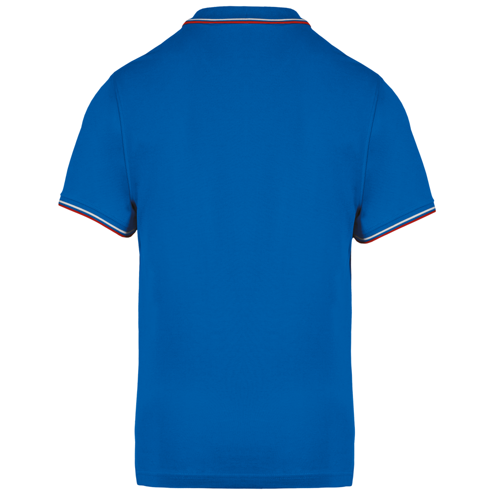100% cotone piqué. 3 bottoni. Collo in contrasto, in costina e spacchetti laterali. Costine con profili in contrasto sul collo e polsini. Cuciture a doppio ago.