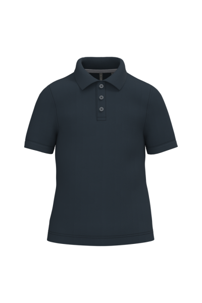 100% Cotone Piquè. Lavabile a 60°. Collo in costina e in contrasto di colore. 3 bottoni e spacchetti laterali. Cuciture a doppio ago.